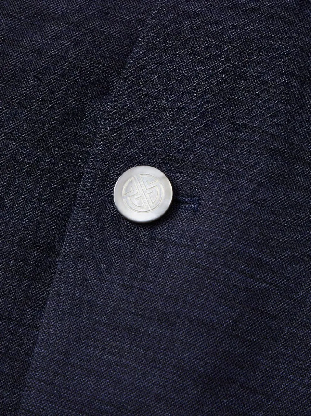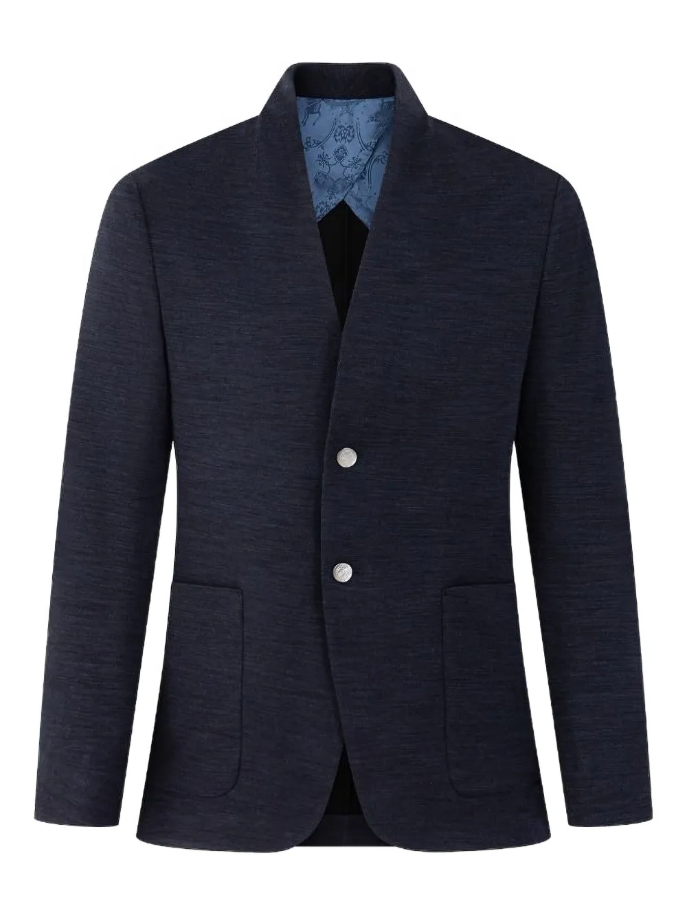 Темно-синий пиджак из шерстяной смеси, застежка на пуговицы, накладные карманы, стойка-воротник