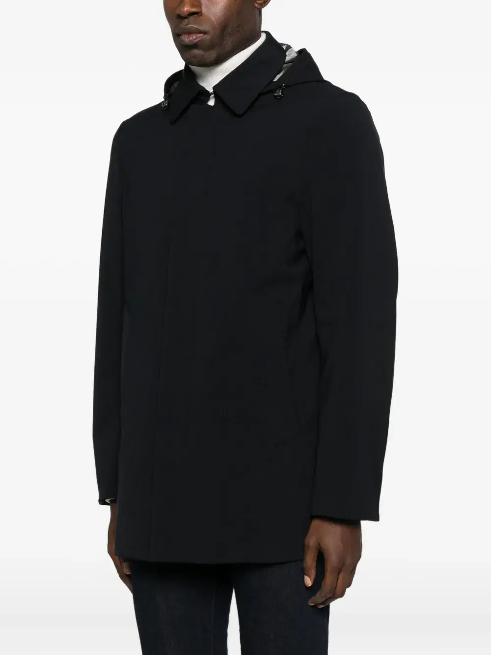 Темно-синий съемный капюшон застежка на пуговицы длинные рукава боковые карманы прямой край