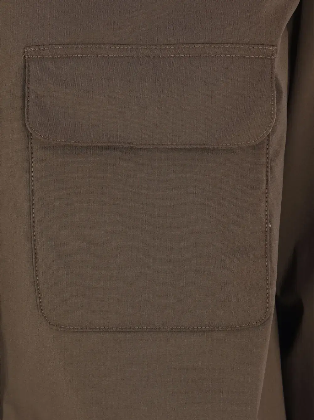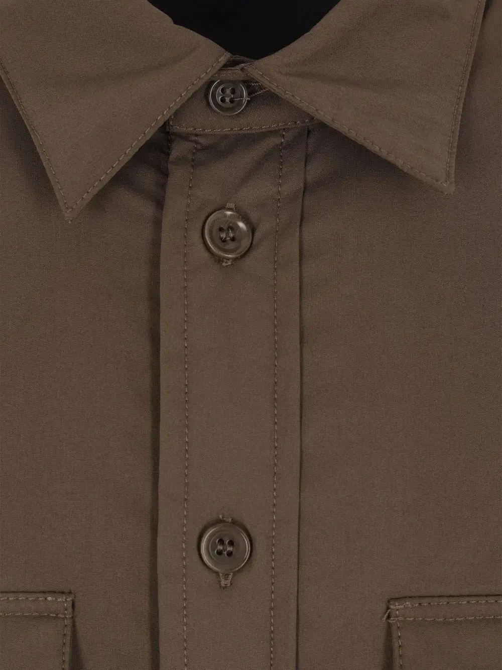 Милитаристский зеленый цвет, классический воротник, застежка на пуговицы, нагрудные карманы, длинные рукава, манжеты на пуговицах