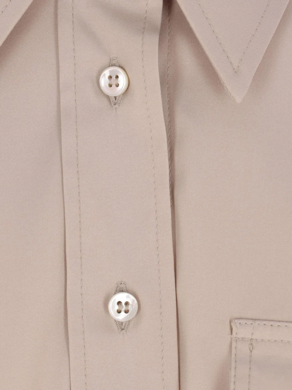 Бежевый воротник поло застежка на пуговицы спереди карман с клапаном декорирование мониль длинные рукава манжеты на пуговицах