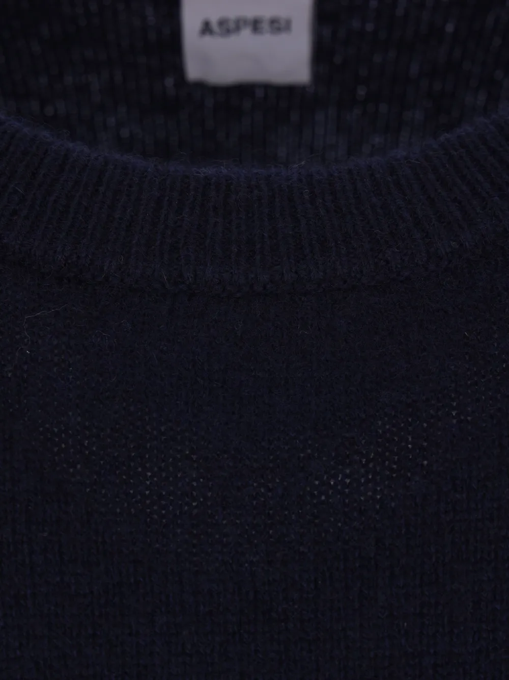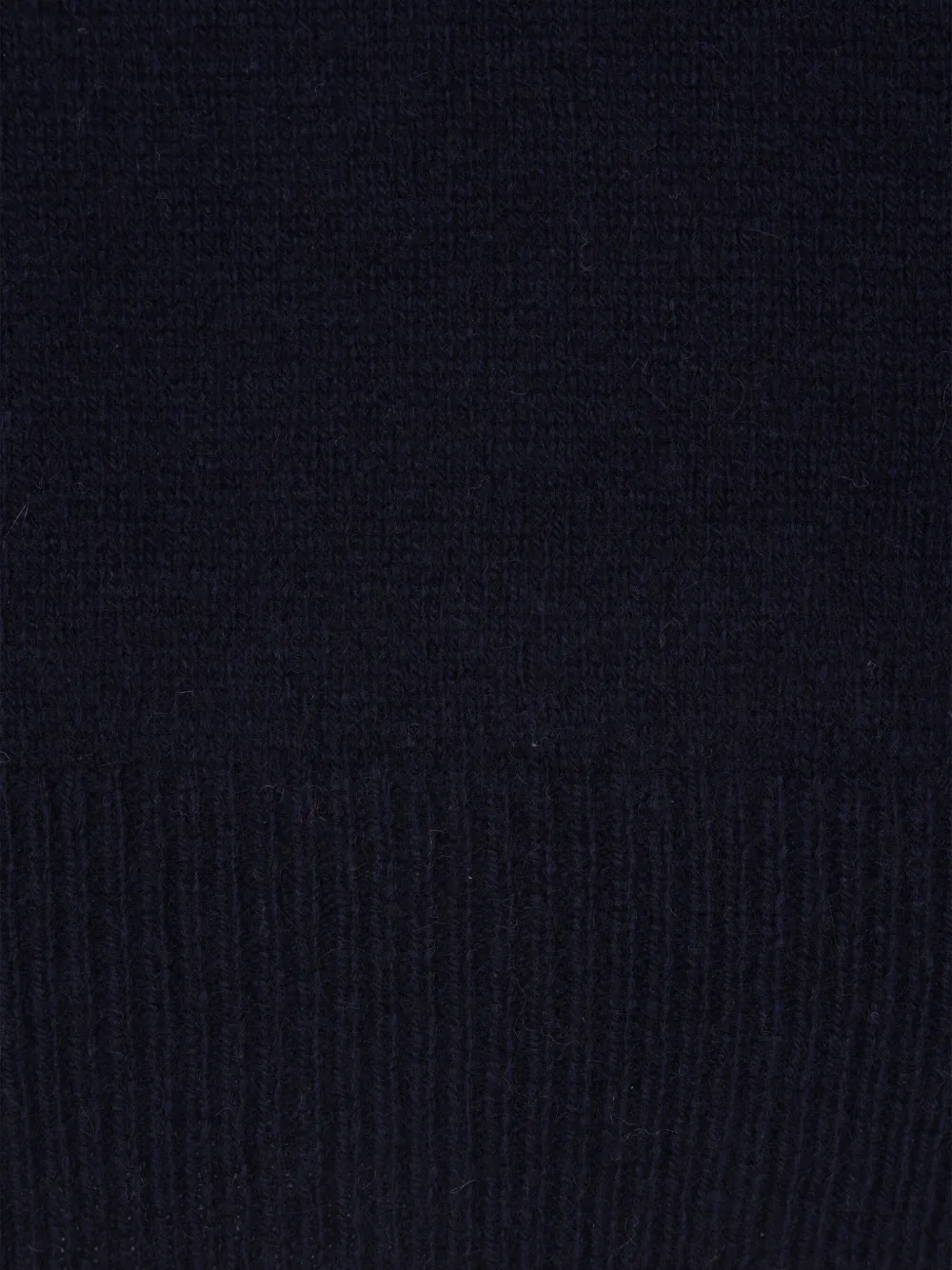 Темно-синий кашемир круглый вырез длинные рукава воротник, манжеты и низ в рубчик