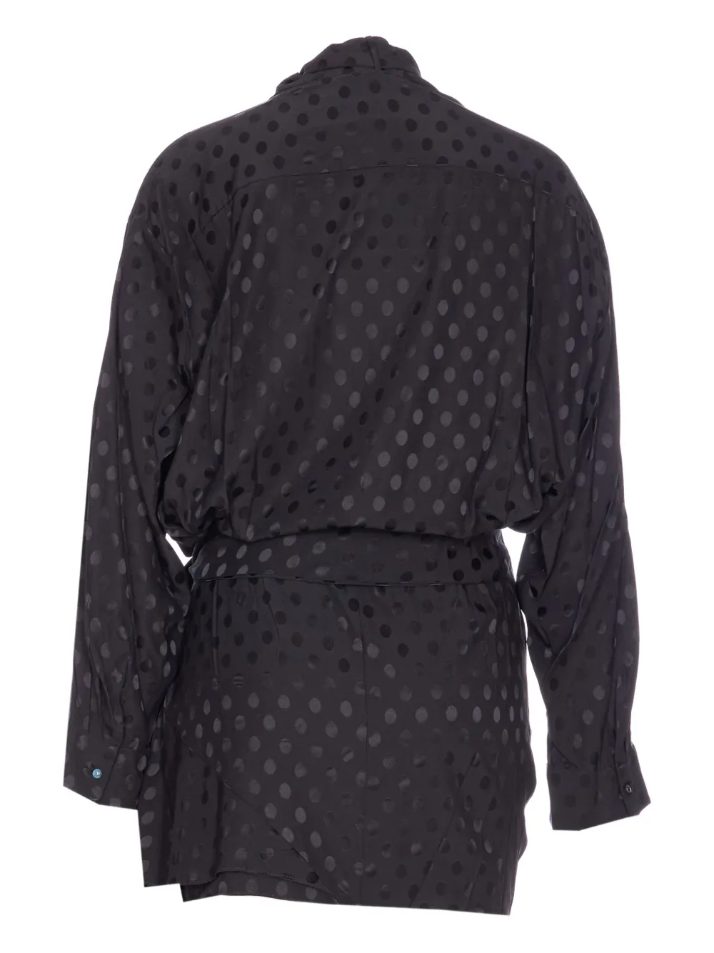 Черный принт в горох асимметричная застежка на пуговицы длинные рукава пояс-завязка завязка на шее