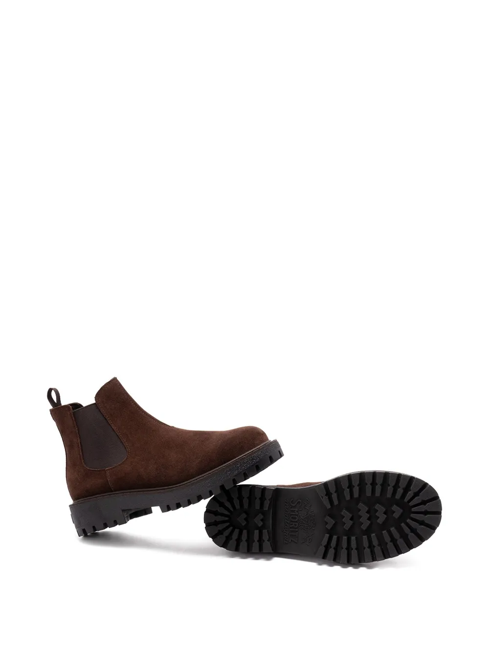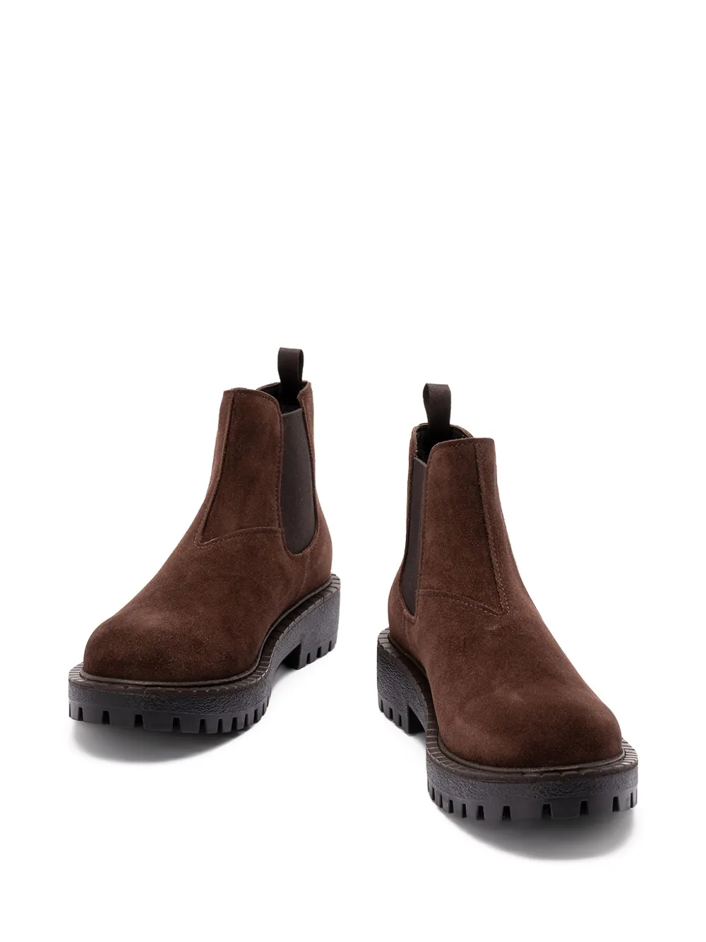 Коричневыйзамшаэластичные боковые вставкикруглый носмассивная резиновая подошва