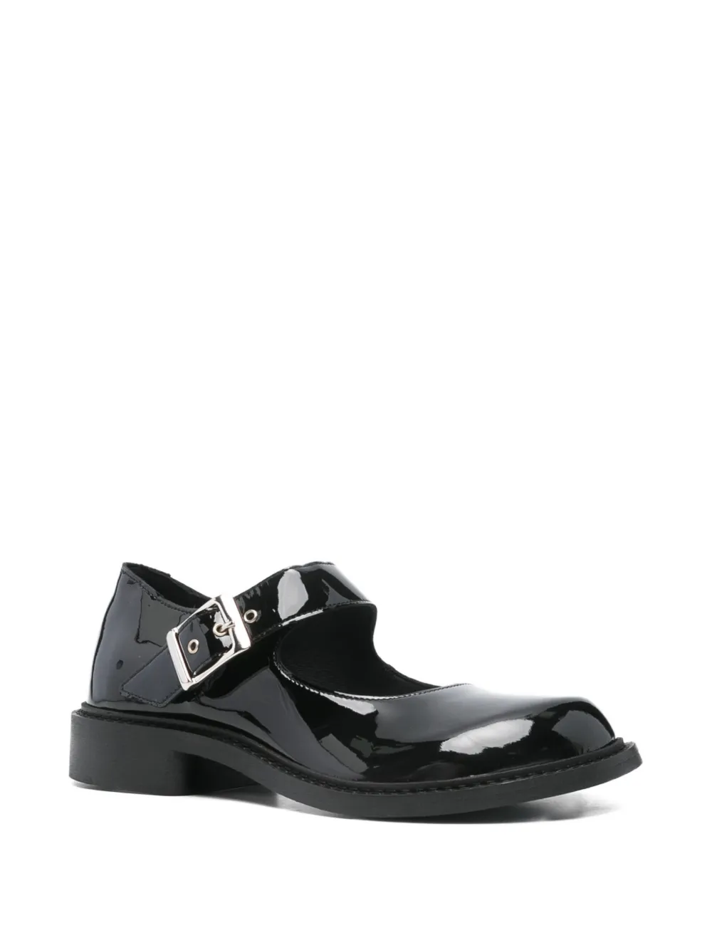 Черный лакированная кожа застежка-пряжка круглый носок низкий каблук стиль Мэри Джейн