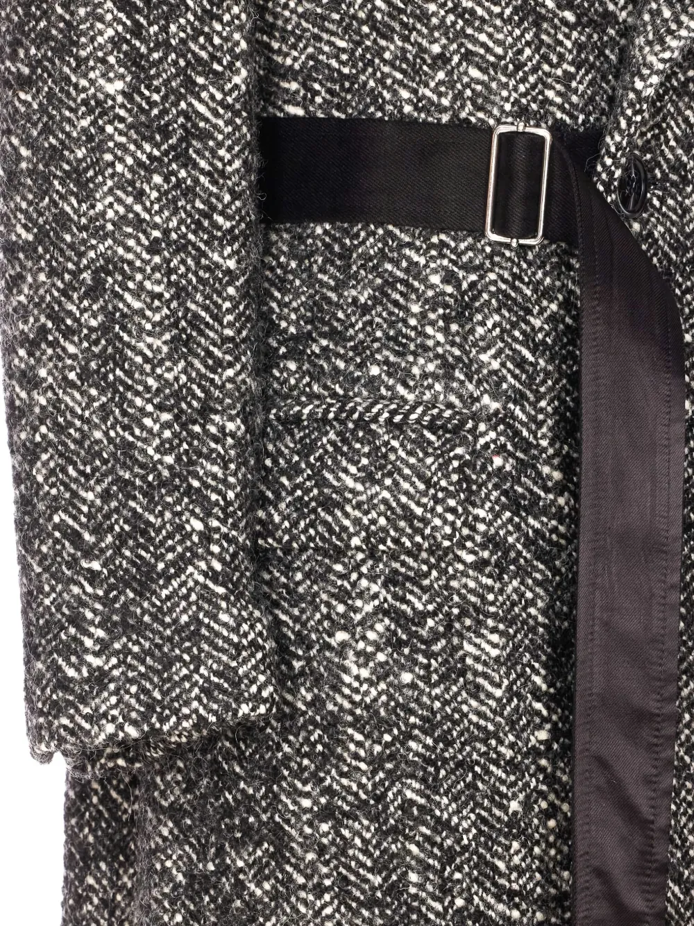 Серый елочка (узор) двубортный застежка на пуговицы карманы с клапанами деталь в виде пояса на завязках длинные рукава