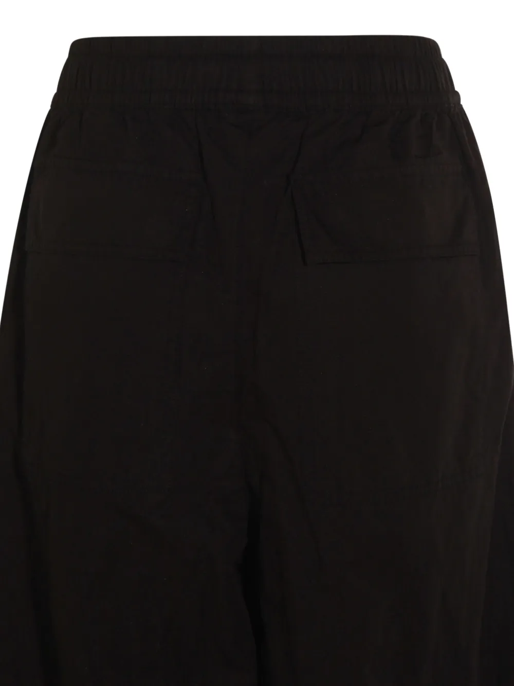 Черный цвет, эластичный пояс, манжеты на штанинах, два задних кармана, однотонный дизайн
