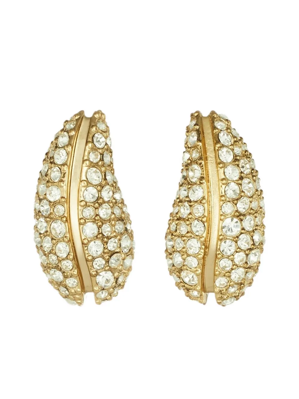 Светлая латунь инкрустация бриллиантами волнообразный дизайн линейный узор застежка-гвоздик каплевидная форма. Эти серьги идут в паре.