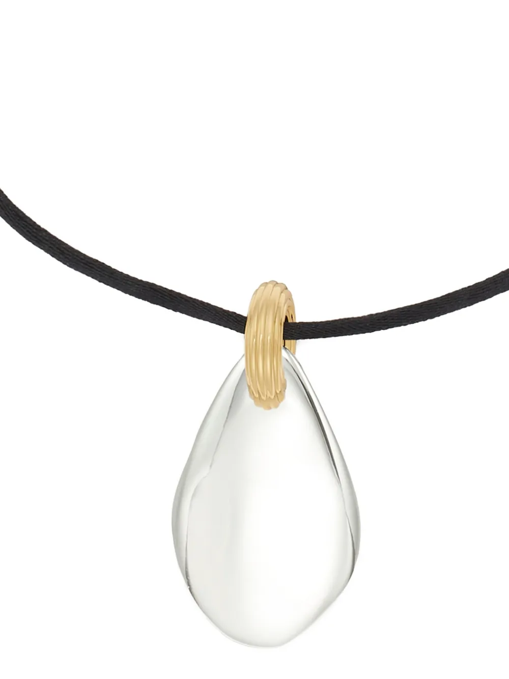 Светло-серебристый подвеска-капля, кольцо с золотистым покрытием, черный шнур, регулируемая застежка, полированная отделка