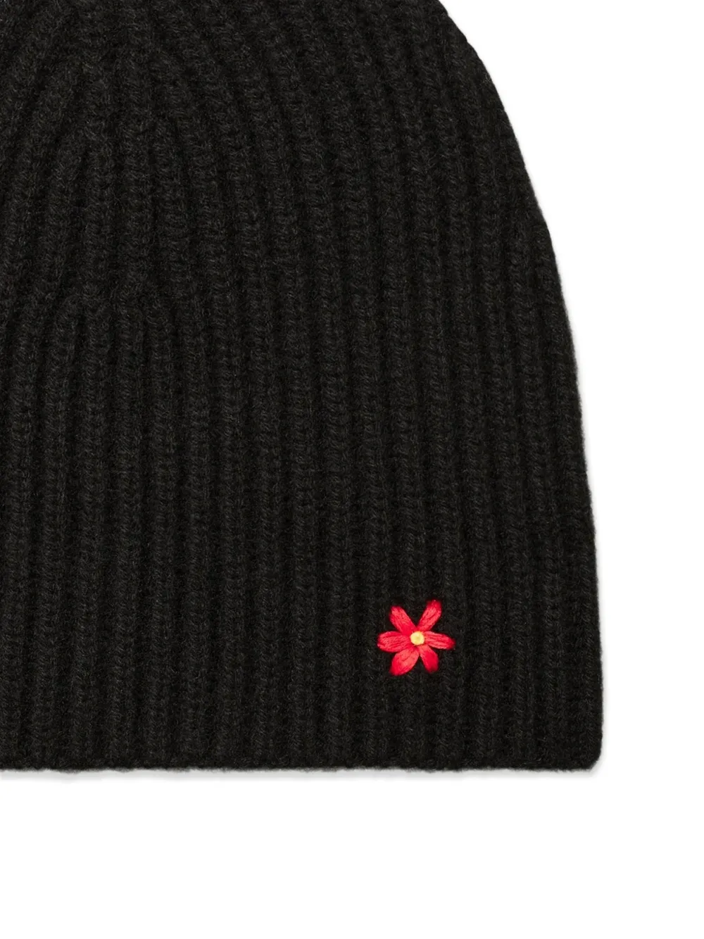 Шапка-бини в рубчик с цветочным декором Tory Burch, черный