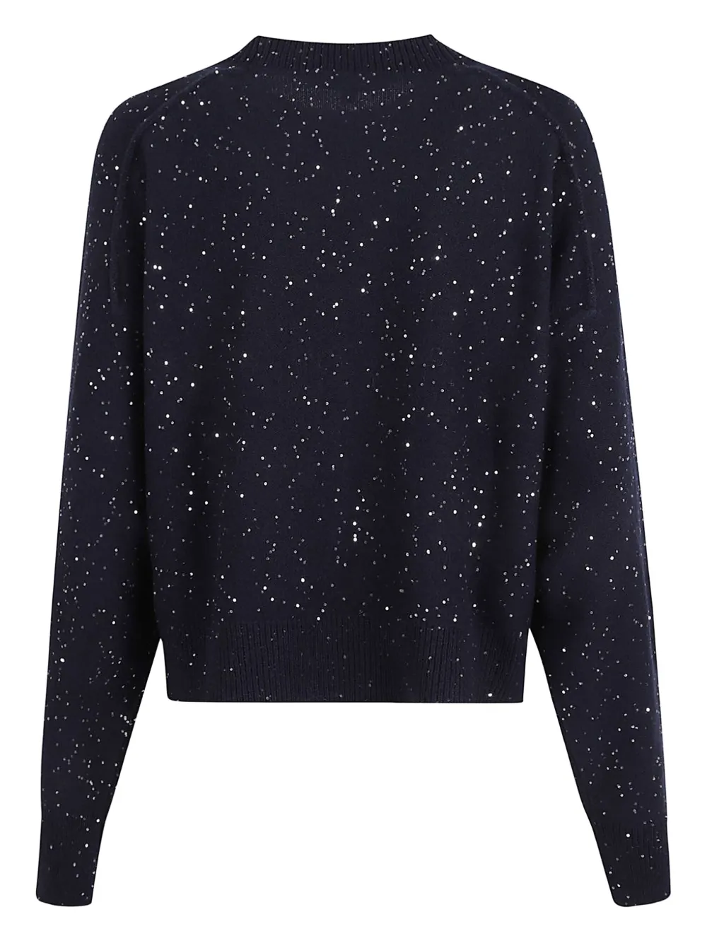 Темно-синий шерсть отделка пайетками круглый вырез длинные рукава