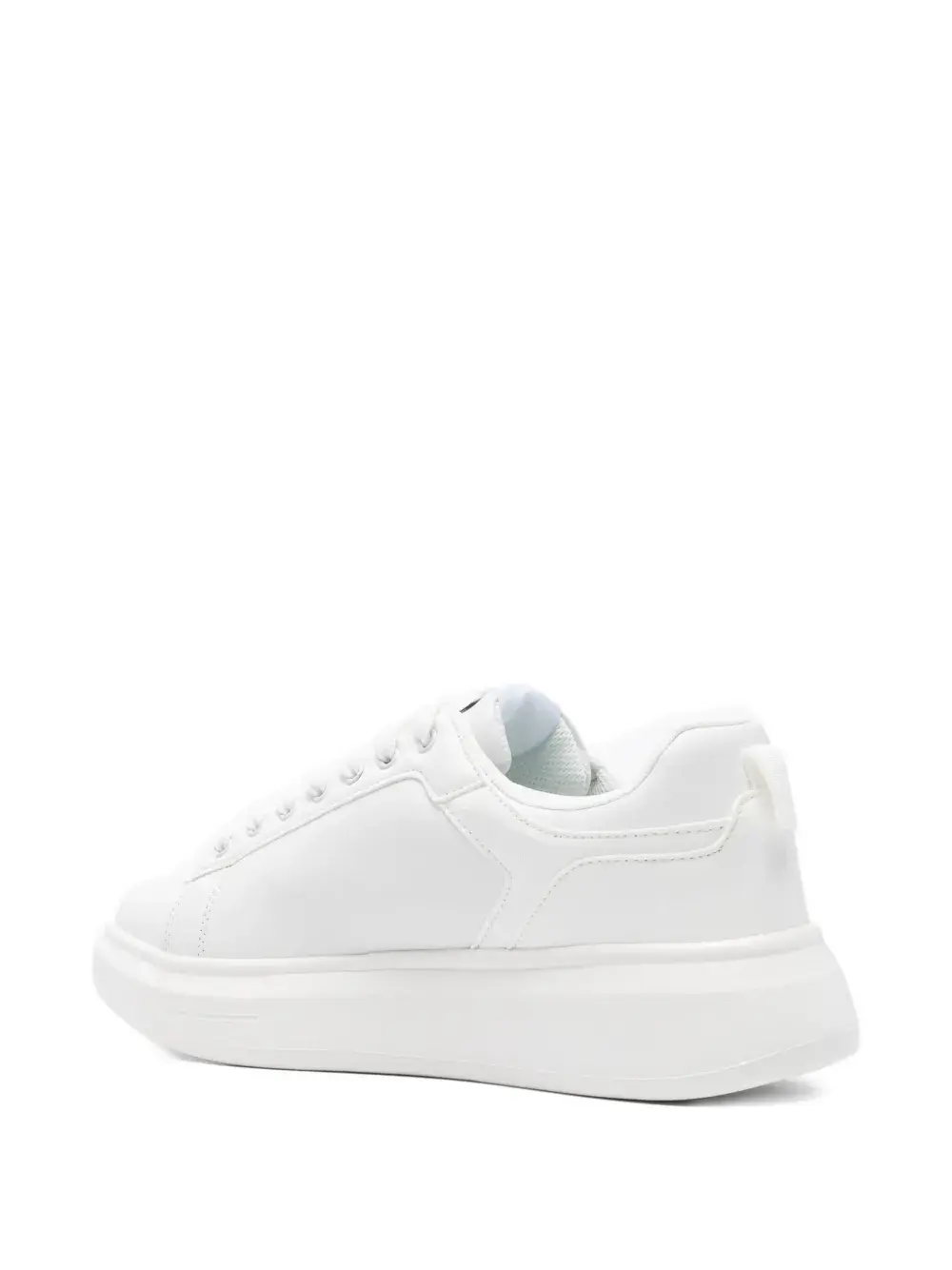 Белый кожаный верх, шнуровка, мягкий воротник, платформа, логотип