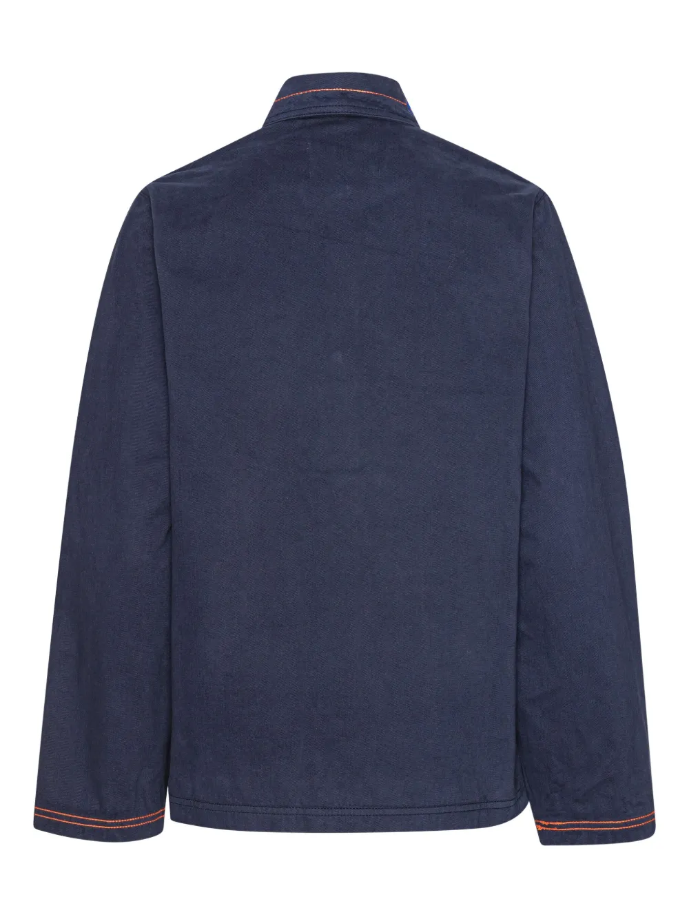 Темно-синий вышивка застежка на пуговицы нагрудные карманы оранжевая строчка длинные рукава