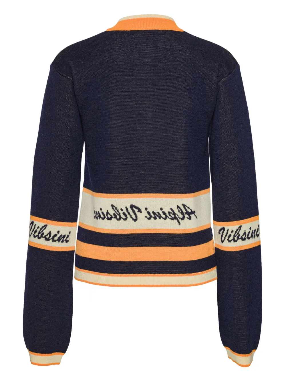 Темно-синий в полоску застежка-молния до середины длинные рукава вязаная отделка