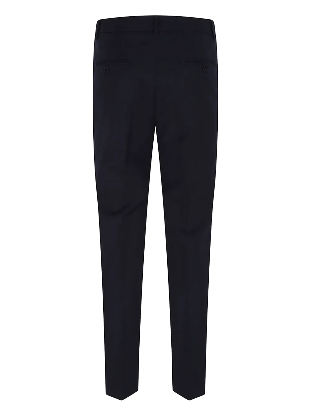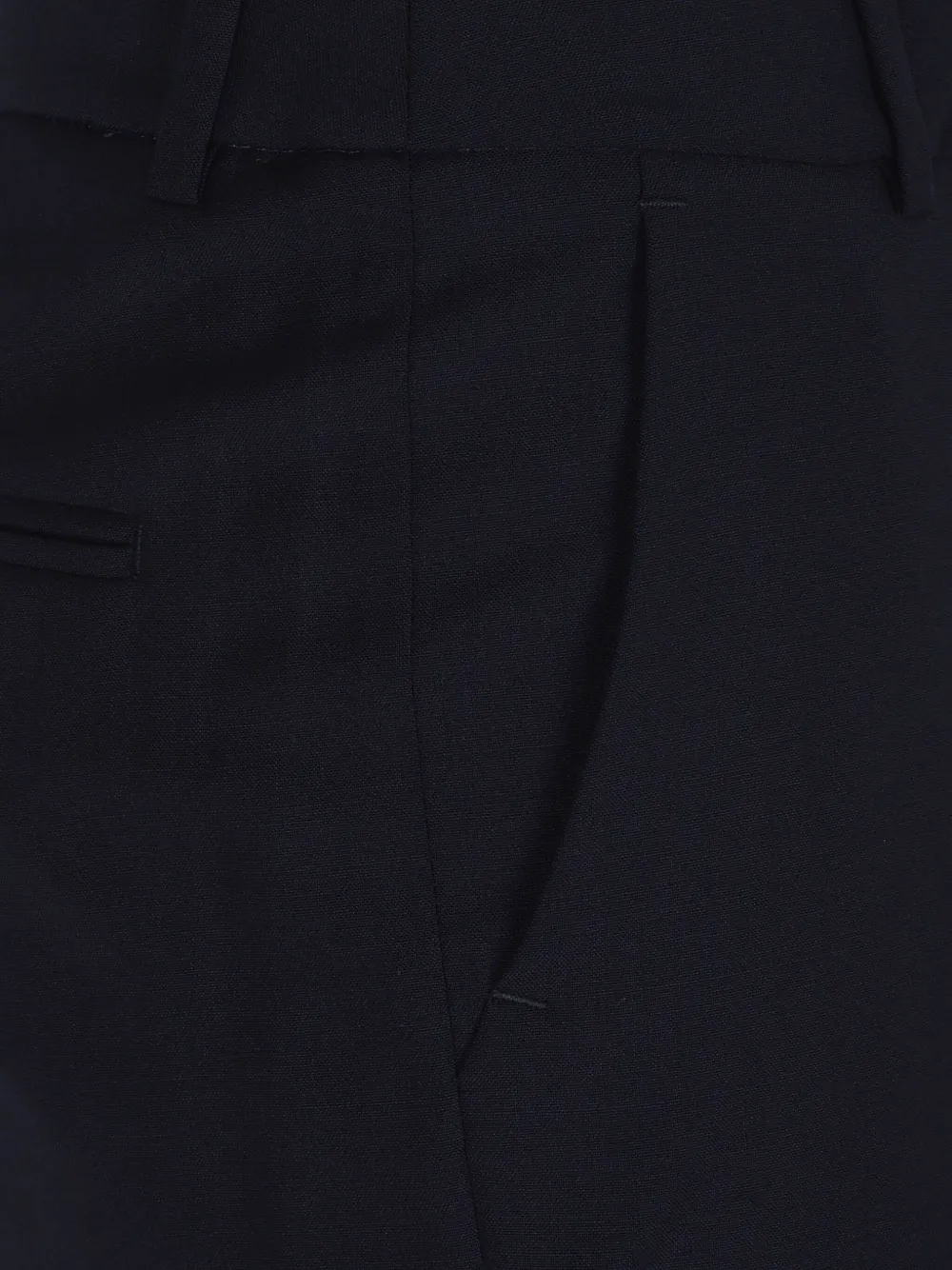 Синие шерстяные брюки с двумя боковыми прорезными карманами и скрытой застежкой спереди
