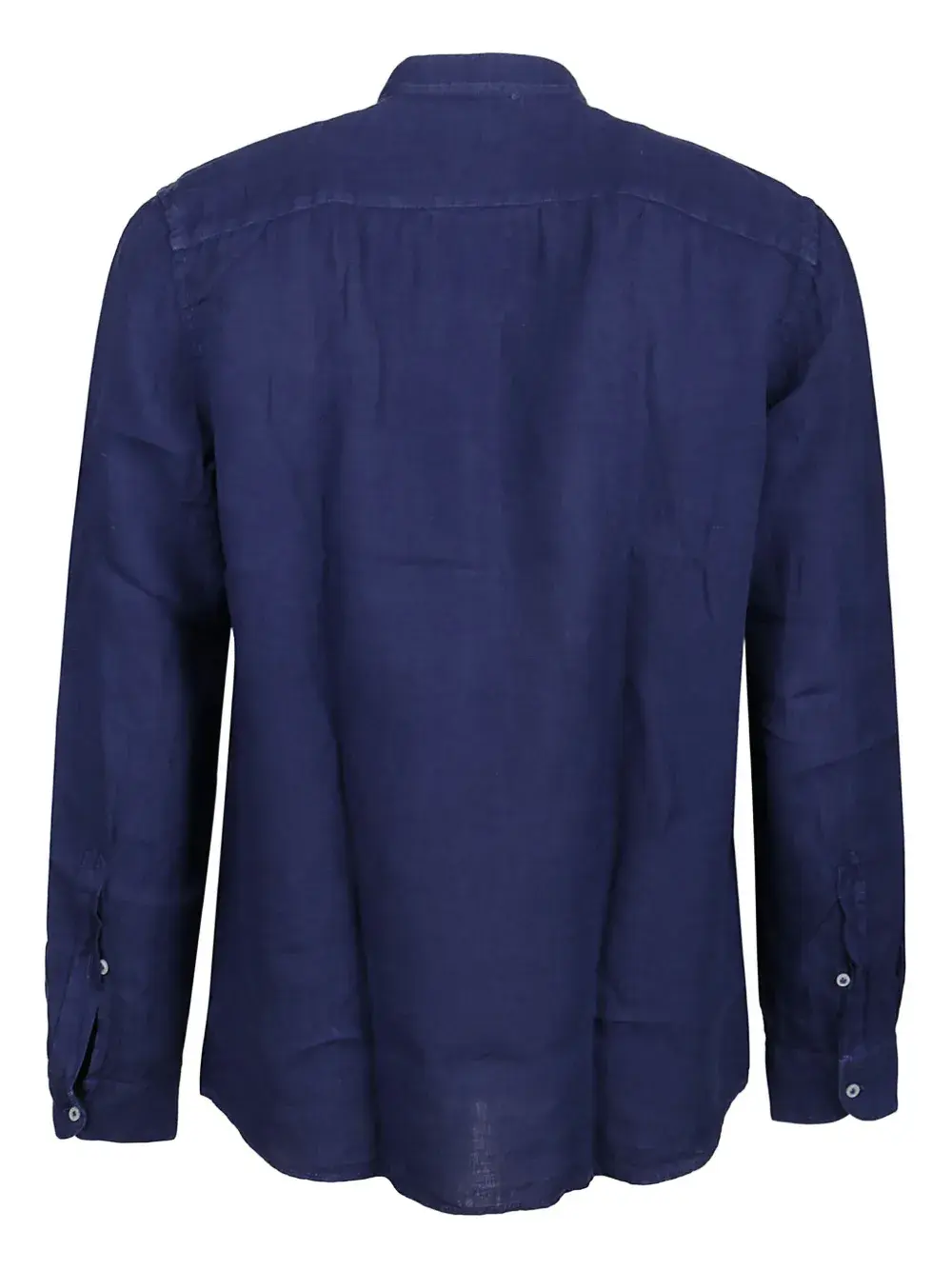 Индиго-синяя льняная рубашка с длинными рукавами, застежкой на пуговицы и нагрудным карманом