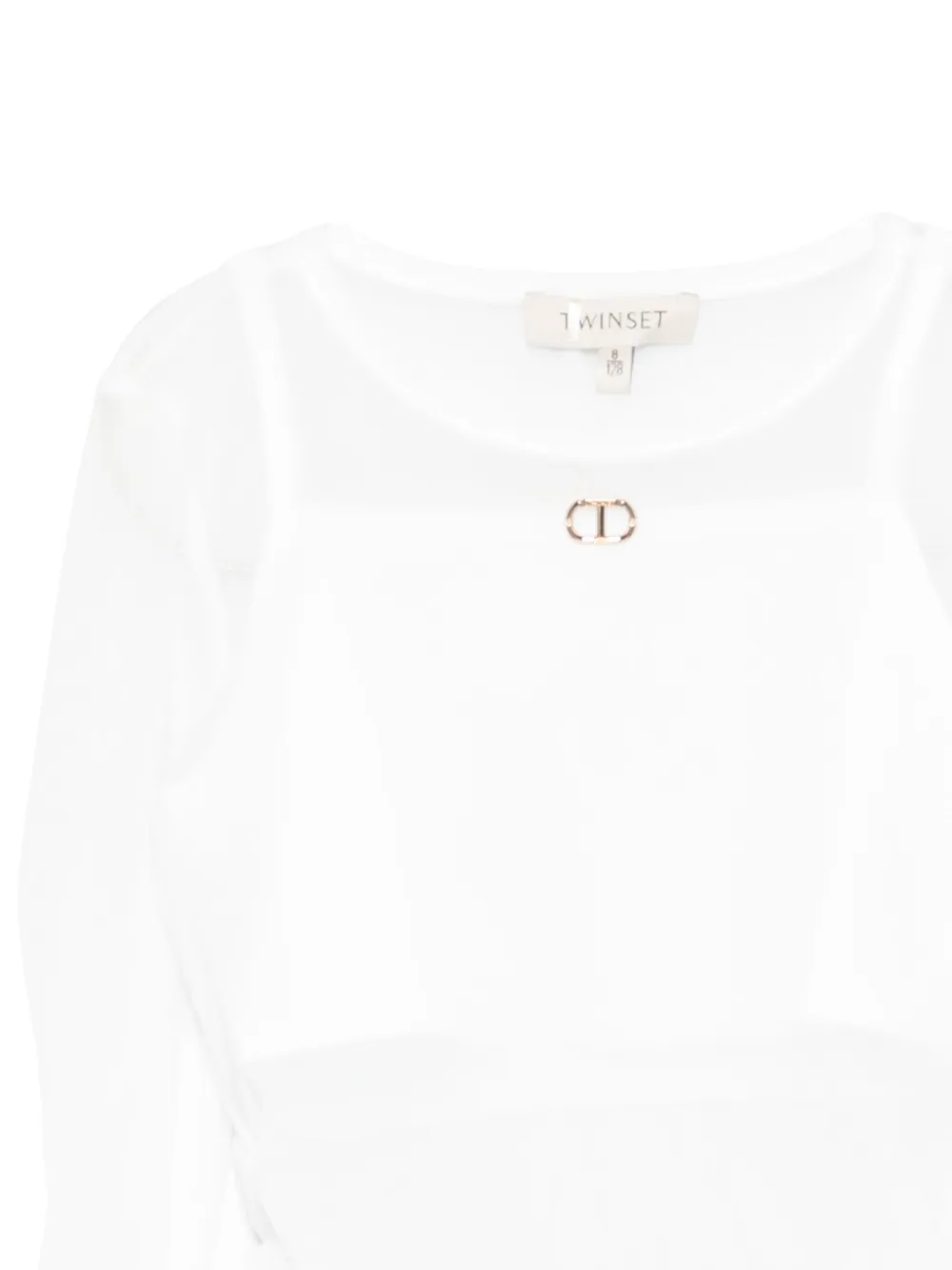 Белый стрейч-хлопок длинные рукава круглый вырез нашивка с логотипом золотистого цвета