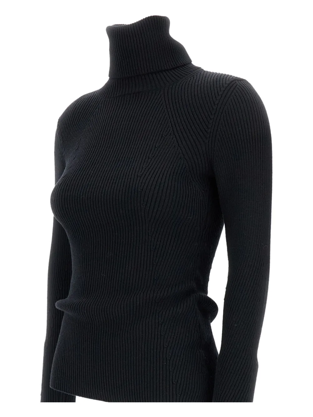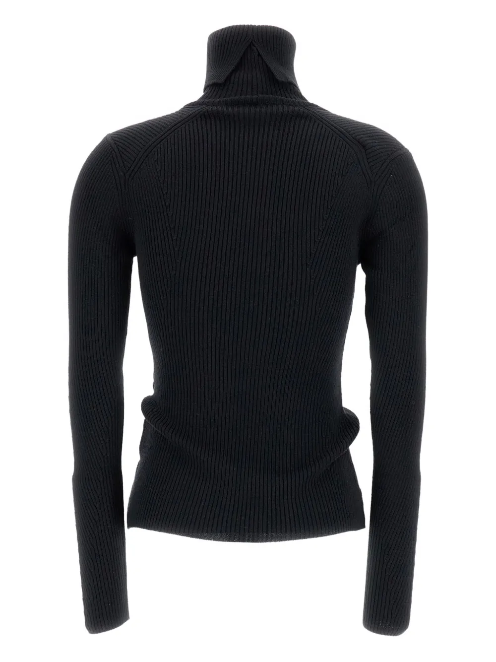 Черный вязаный в рубчик водолазка длинные рукава шерсть прямой низ