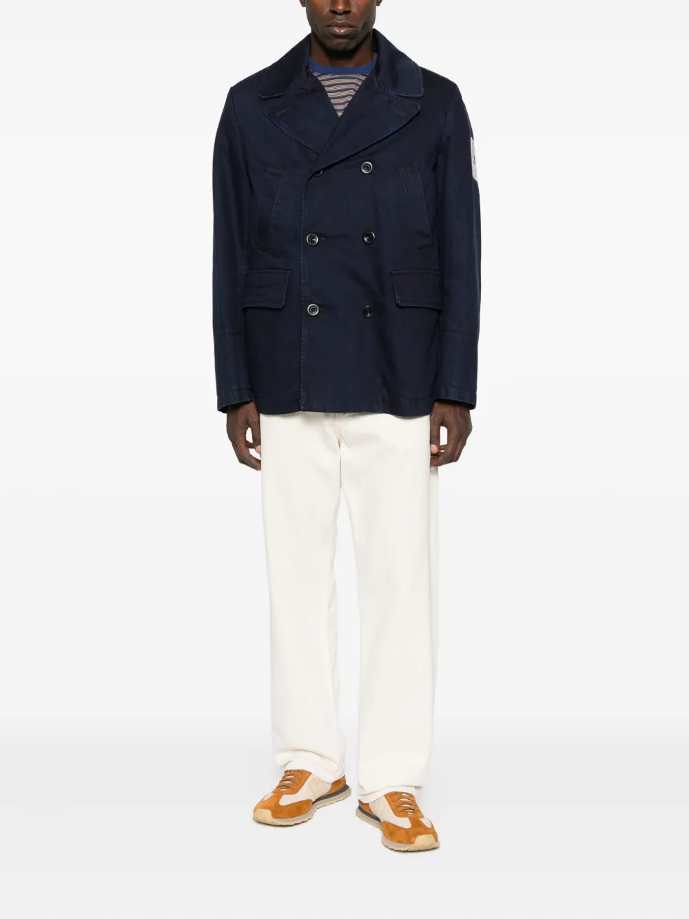 Темно-синий двубортная застежка передние карманы с клапанами длинные рукава хлопок