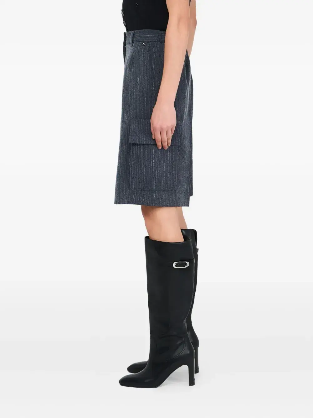 Стальной синий узор в полоску заутюженная складка боковые карманы карман карго застежка-молния металлическая деталь с логотипом