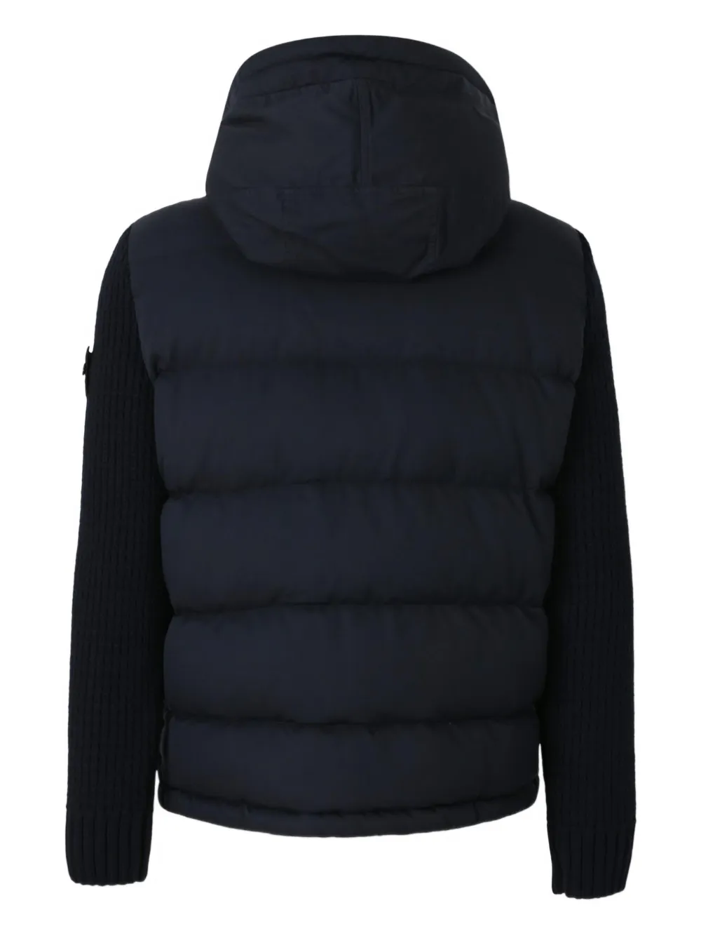 Темно-синий стеганый двусторонняя застежка-молния рукава в рубчик высокий воротник классический капюшон