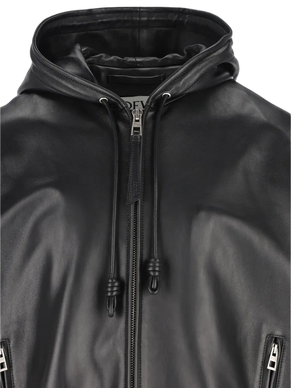 Кожаная куртка с капюшоном LOEWE, черный 528 432₽