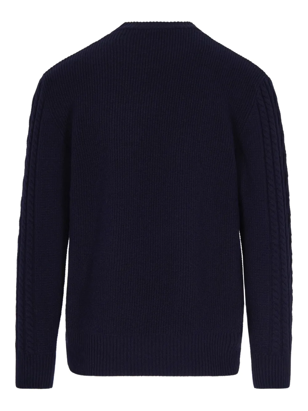 Темно-синий вязаный косами круглый вырез длинные рукава ребристые манжеты ребристый низ