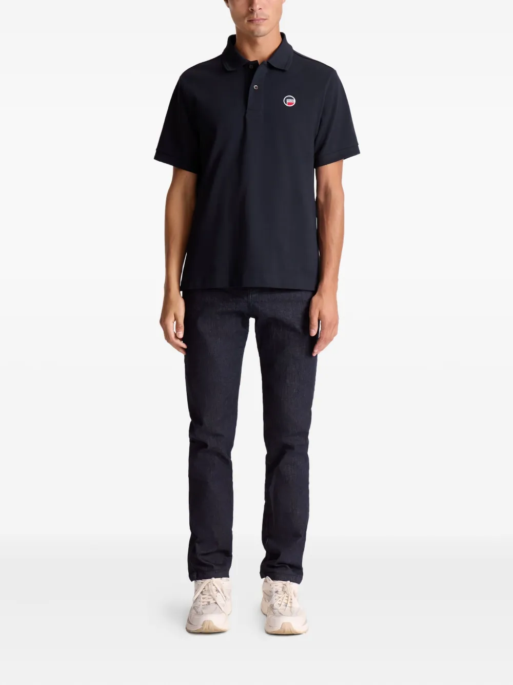 Темно-синий пике хлопок застежка на пуговицы спереди воротник поло короткие рукава аппликация с логотипом