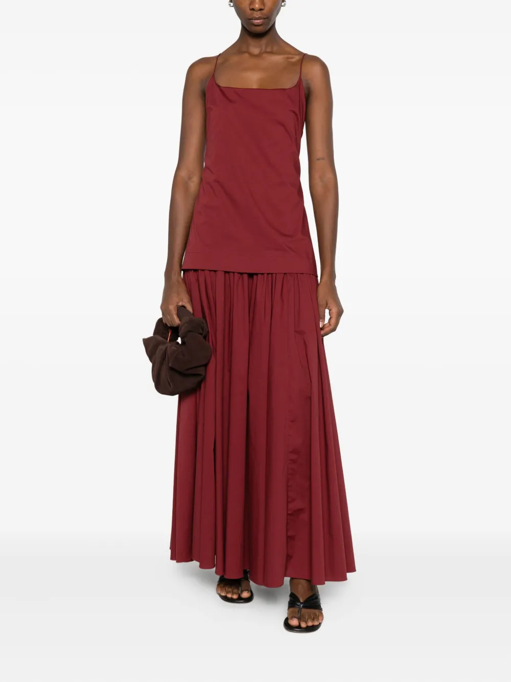 Плиссированное макси-платье на бретелях-спагетти STAUD, красный