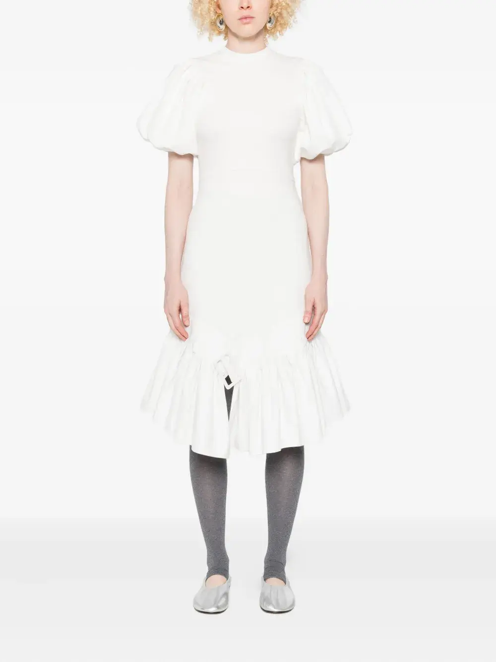 Платье с пышными рукавами и оборками Rokh, белый