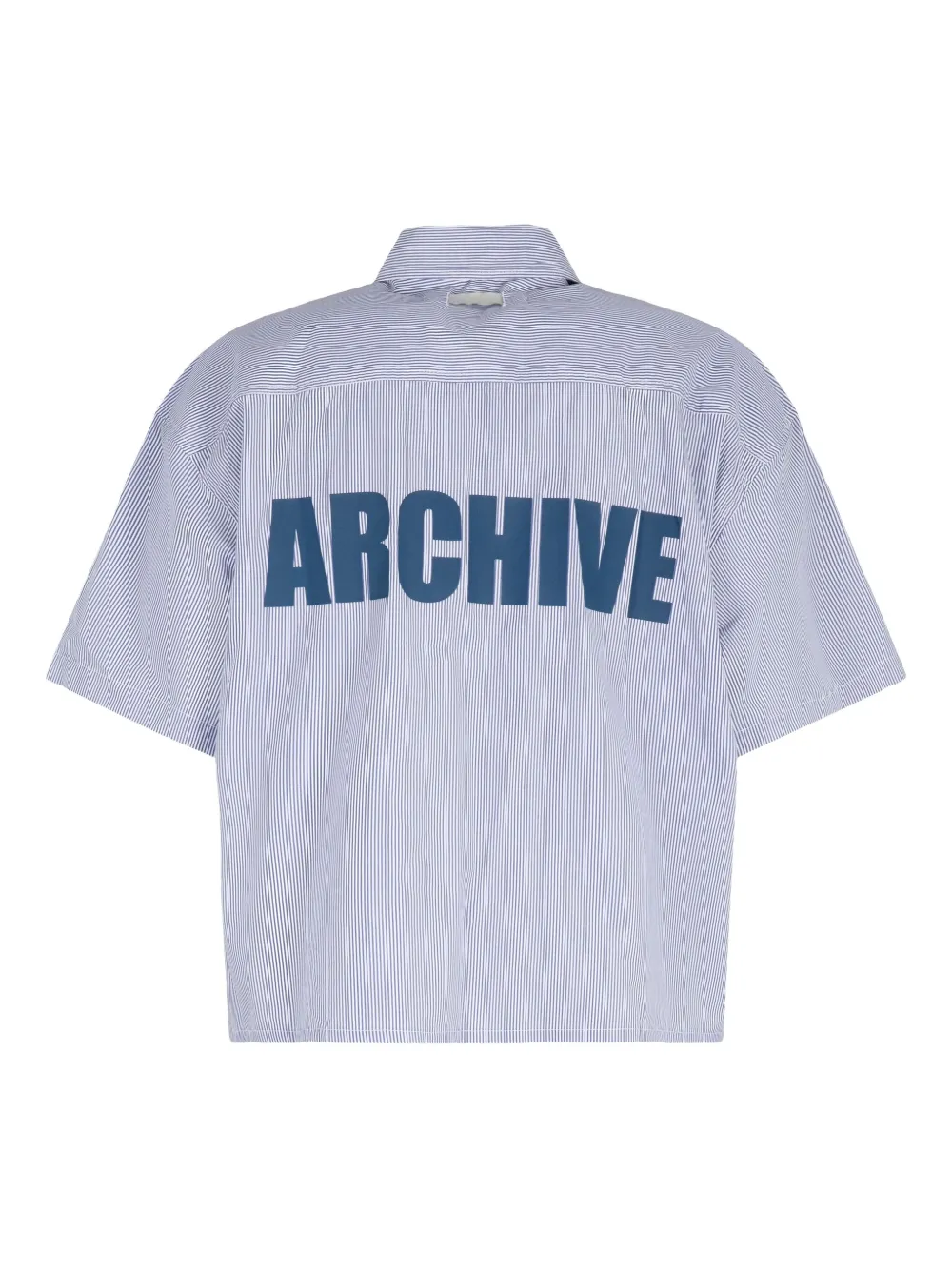Светло-голубой в полоску (тонкая полоска) короткие рукава нагрудные карманы принт на спине