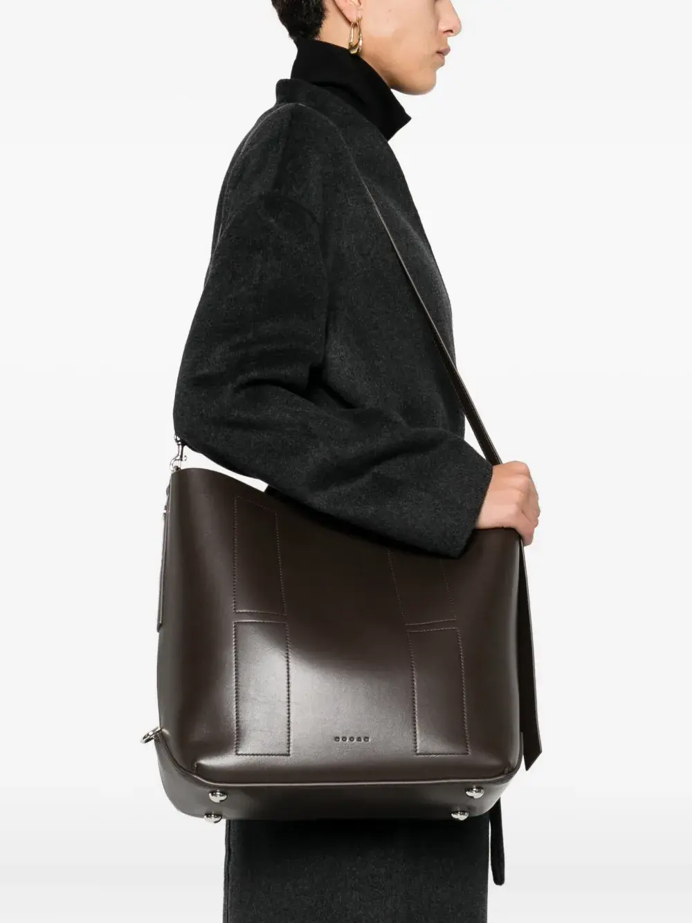 Коричневый кожа съемный плечевой ремень логотип на бирке внутренний карман панельные детали