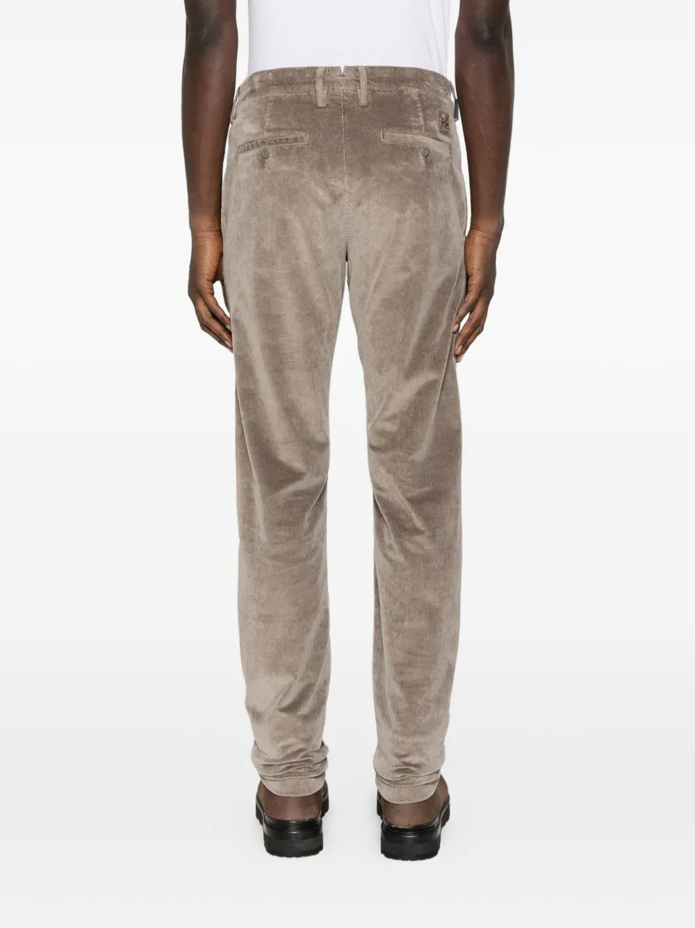 Серо-бежевый вельветовая текстура пять карманов застежка на пуговицах шлевки для ремня прямой крой брючин