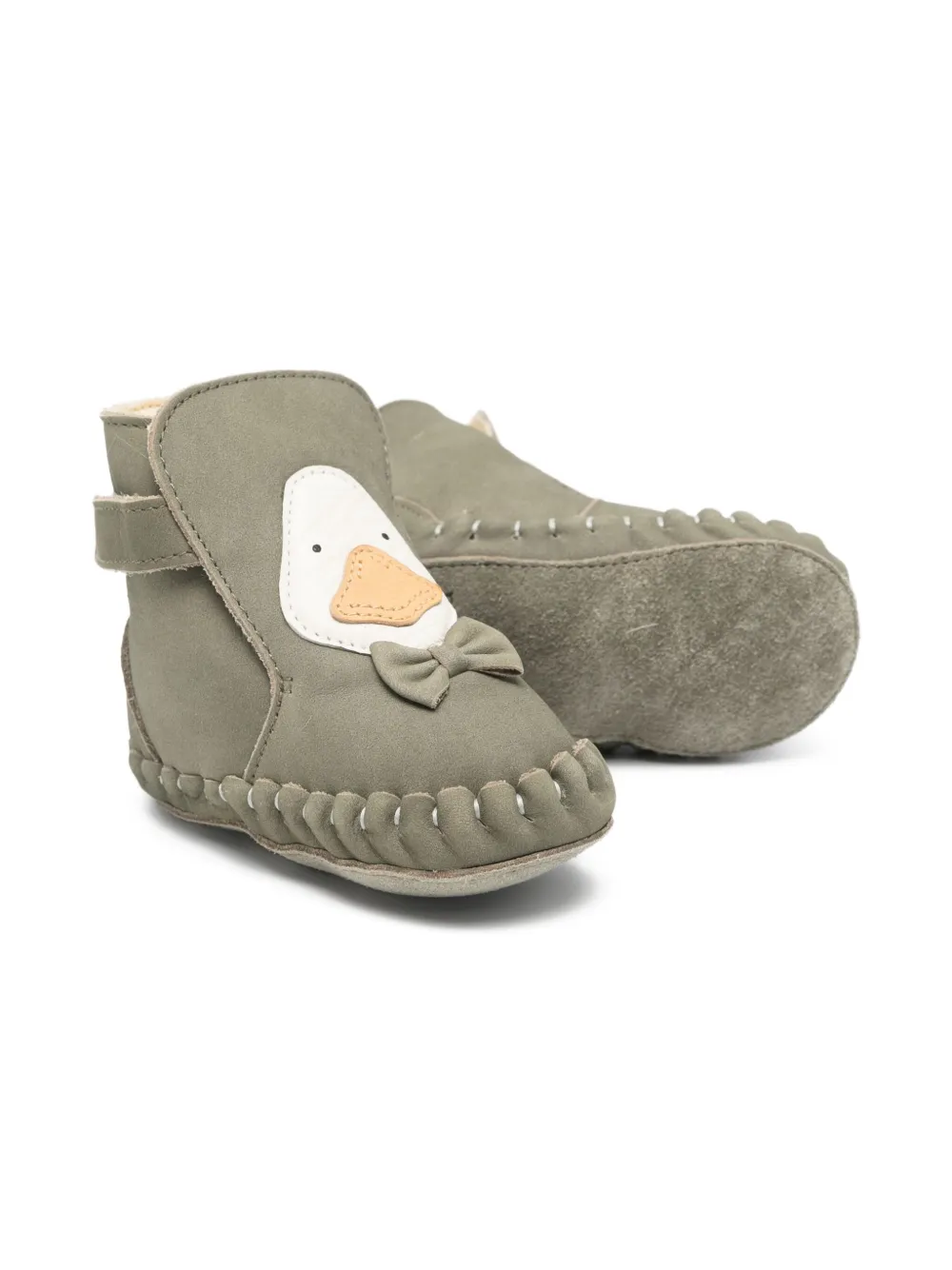 Оливково-зеленый замша аппликация в виде утиное лицо декор в виде банта плоская подошва