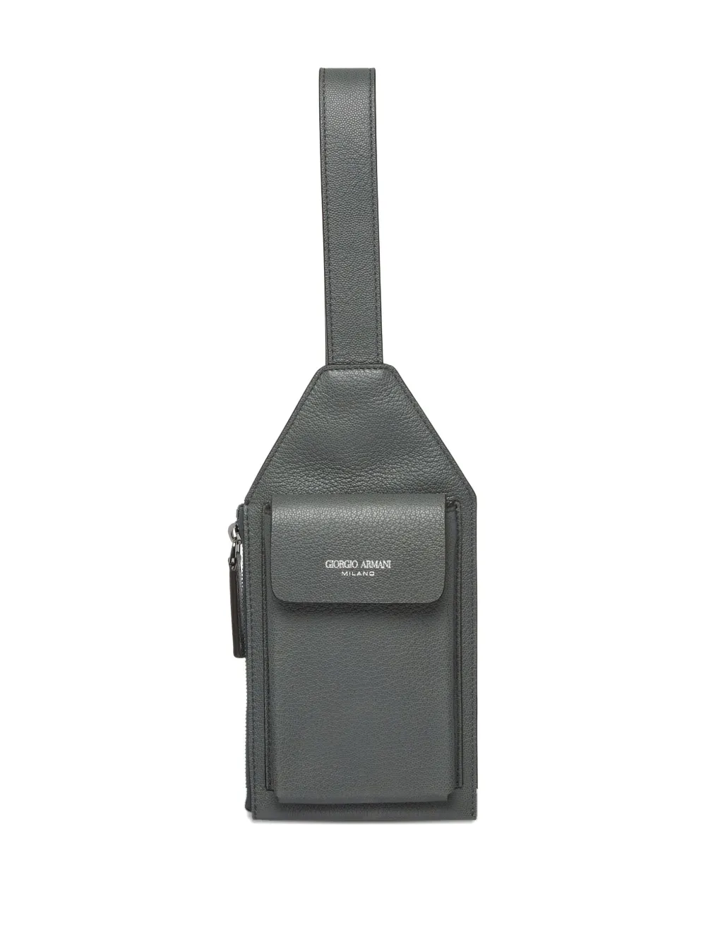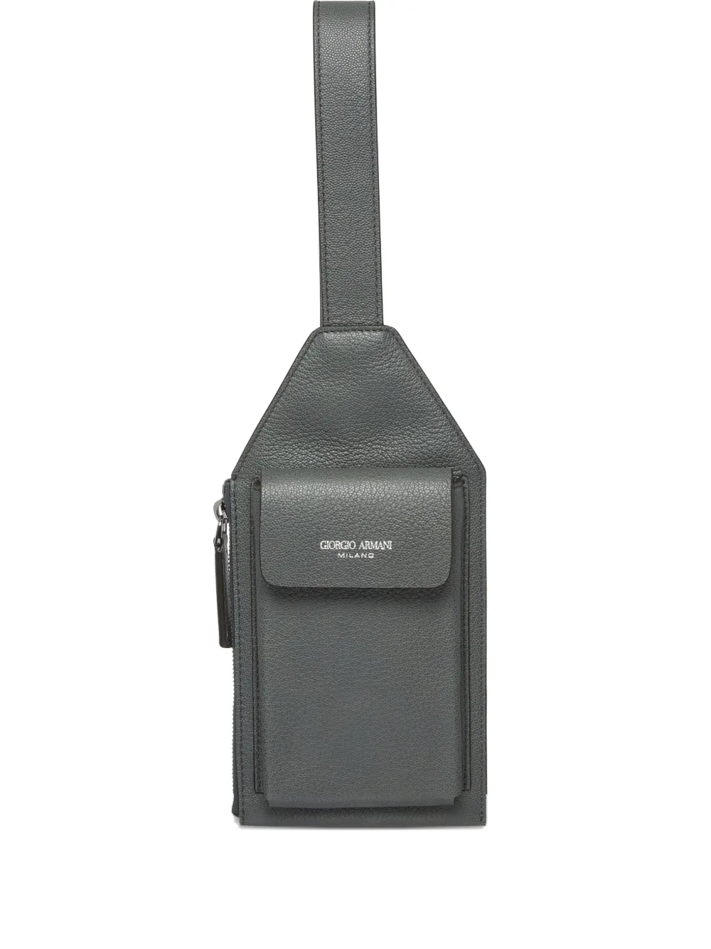 Кожаная сумка-мессенджер GIORGIO ARMANI, серый