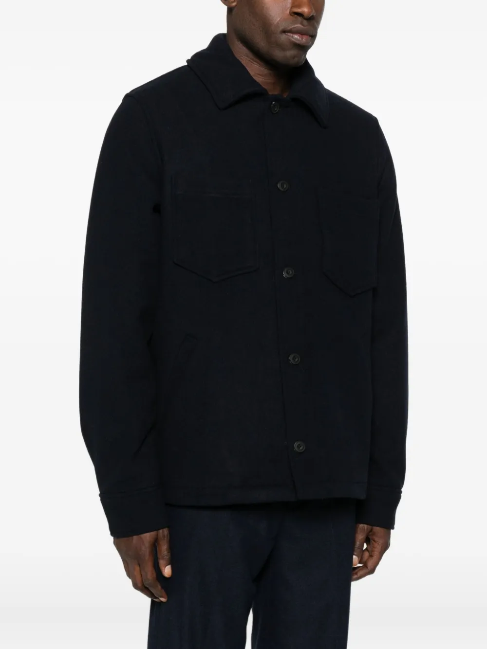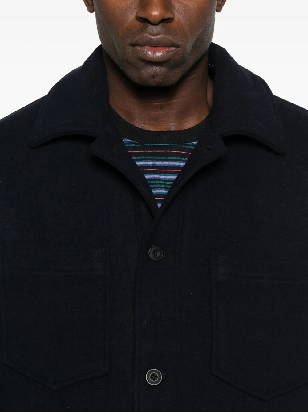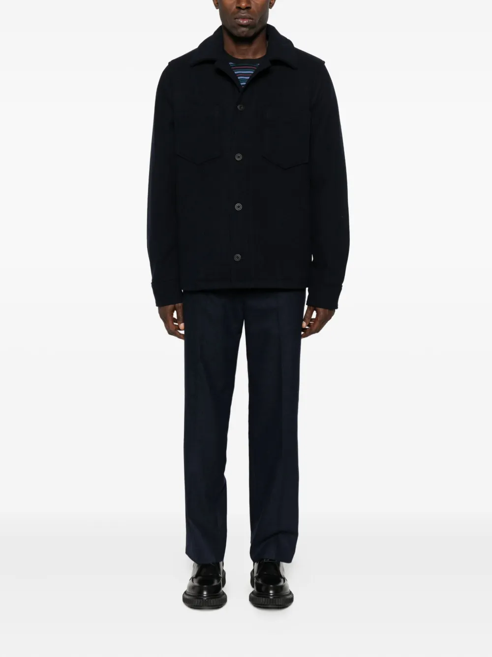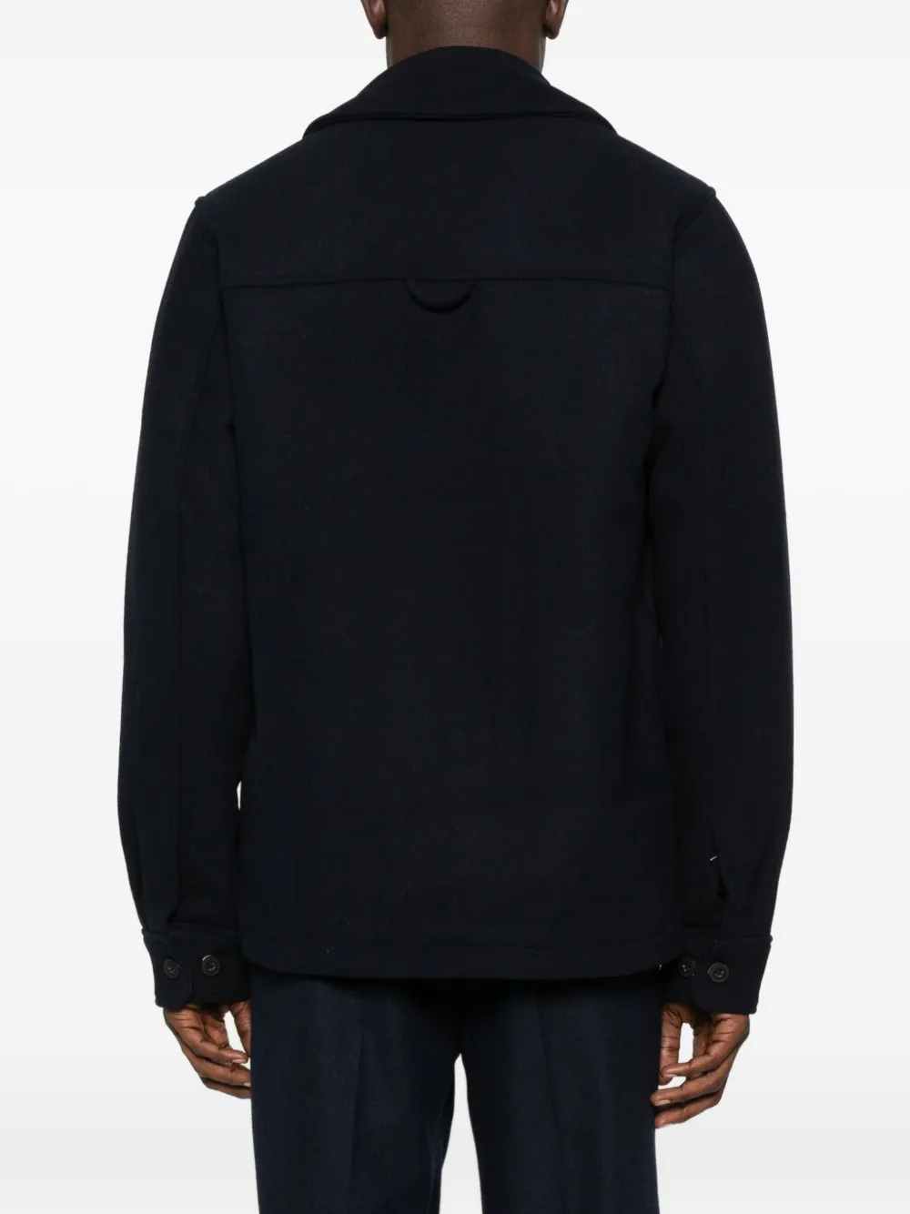 Черный смесь шерсти застежка на пуговицах спереди нагрудные карманы с клапаном длинные рукава