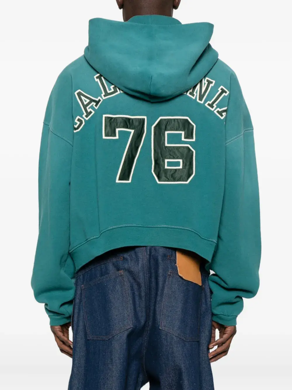Синий худи на молнии с карманами-кенгуру, аппликацией в виде буквы и длинными рукавами