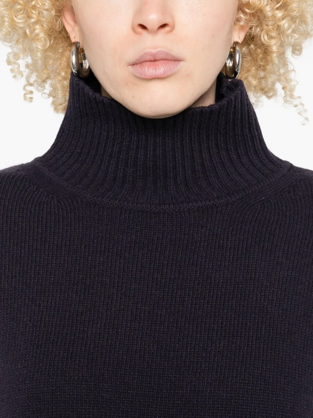 Темно-синий 100% шерсть мериноса высокий ворот длинные рукава вязка резинкой на манжетах и по низу