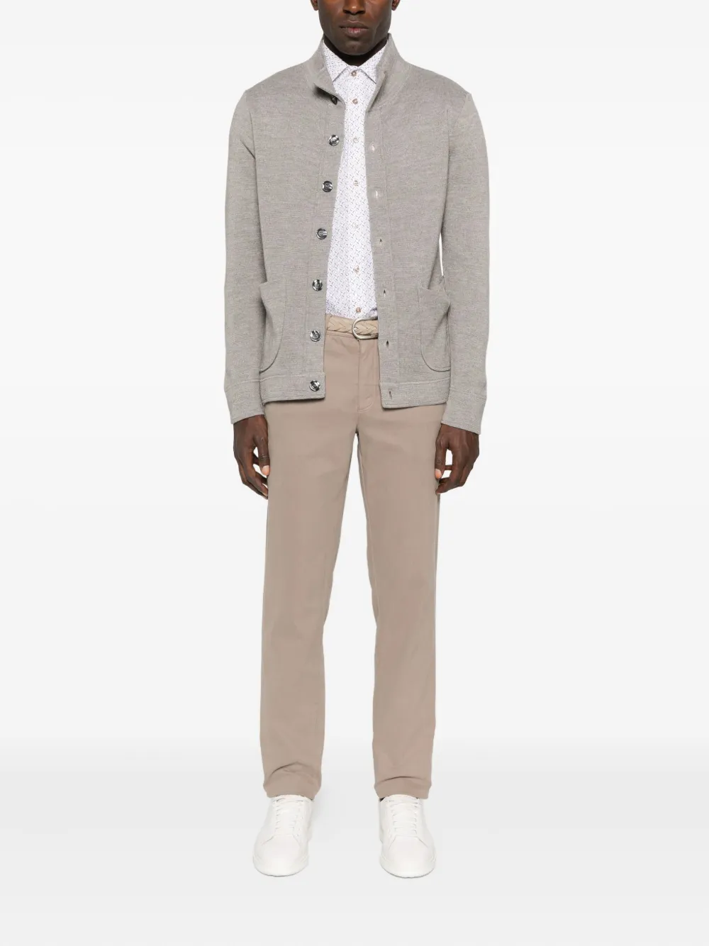 Белый всесезонный принт длинные рукава застежка на пуговицы спереди классический воротник закругленный низ