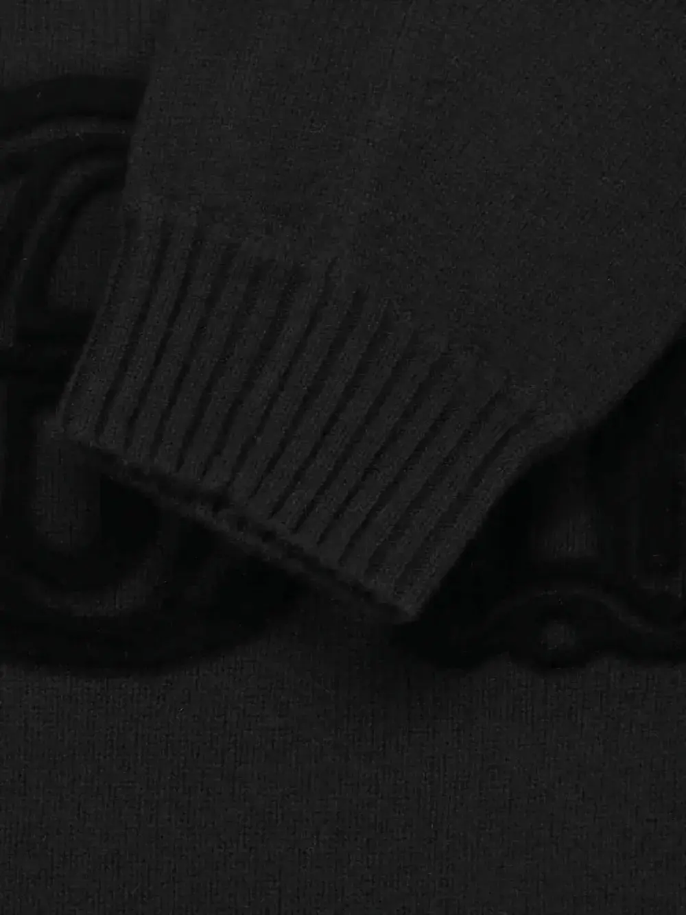 Черный джемпер с круглым вырезом, длинными рукавами, ребристыми манжетами, декоративными нашивками и бархатной текстурой appliqué