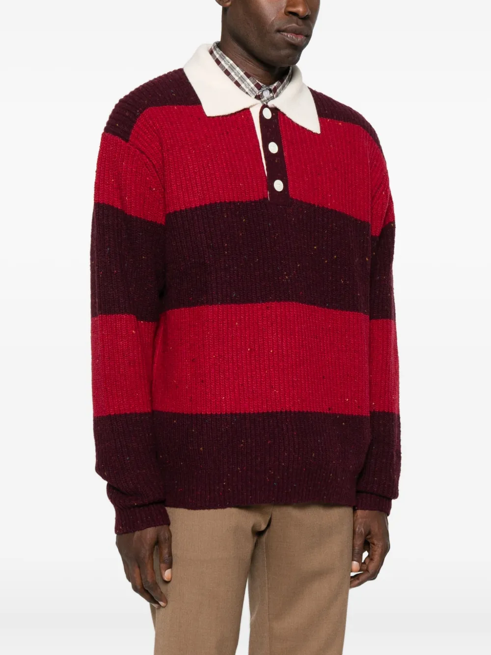 Полосатый свитер с воротником-поло DUNST, красный