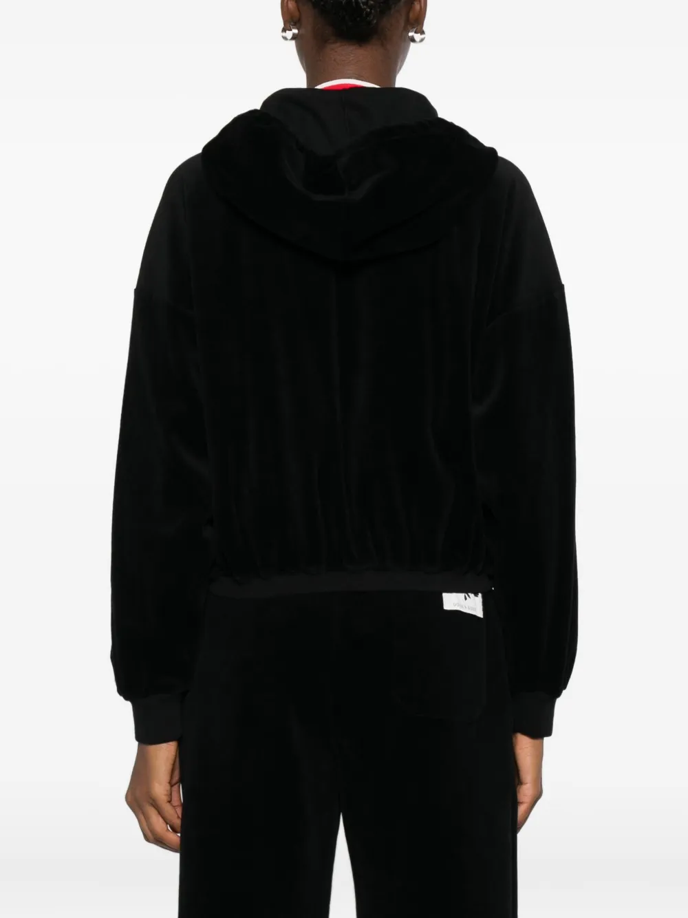 Черный застежка-молния капюшон длинные рукава