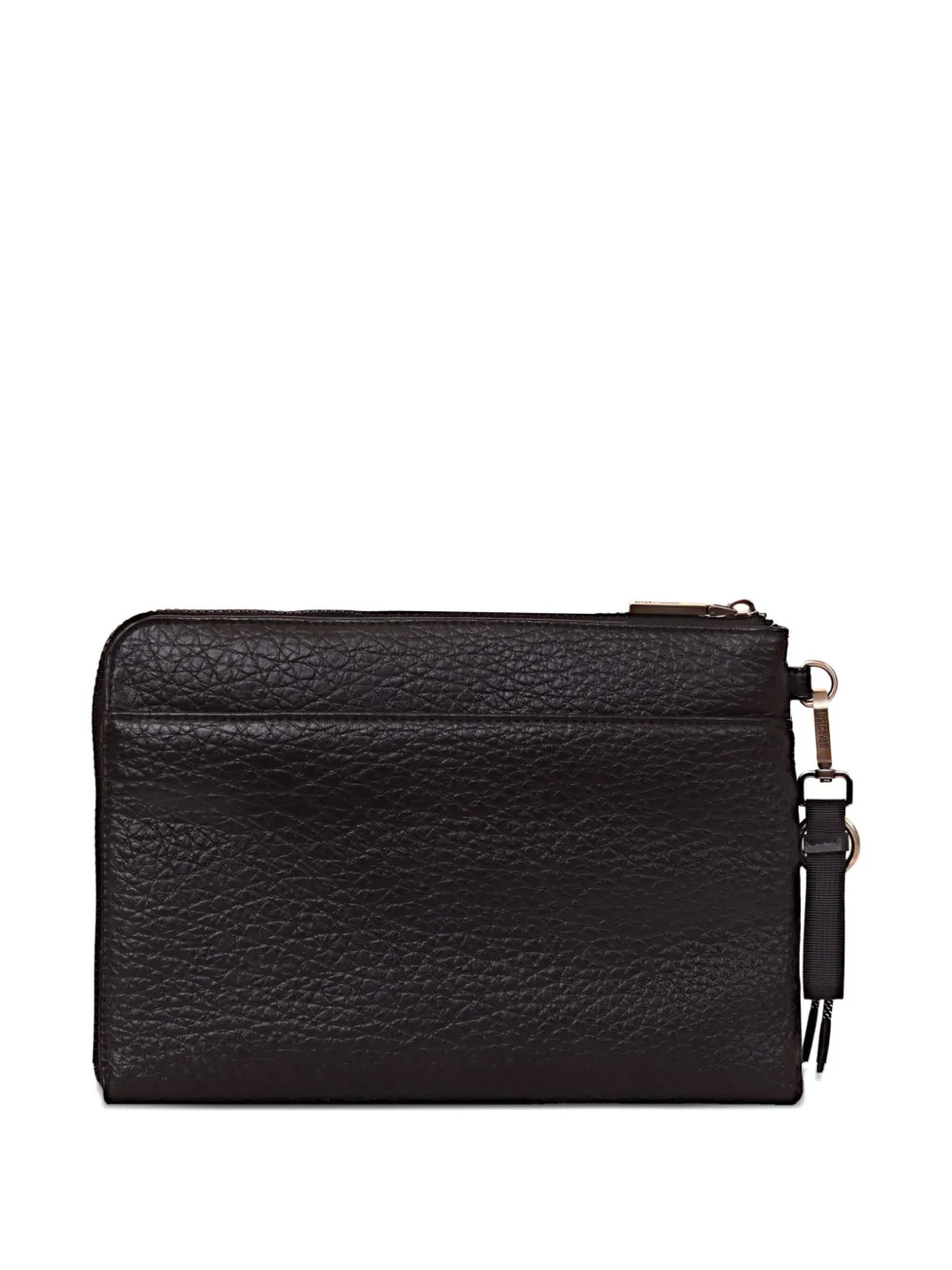 Черный цвет, застежка-молния, съемный ремешок на запястье, логотип-табличка, прямоугольная форма