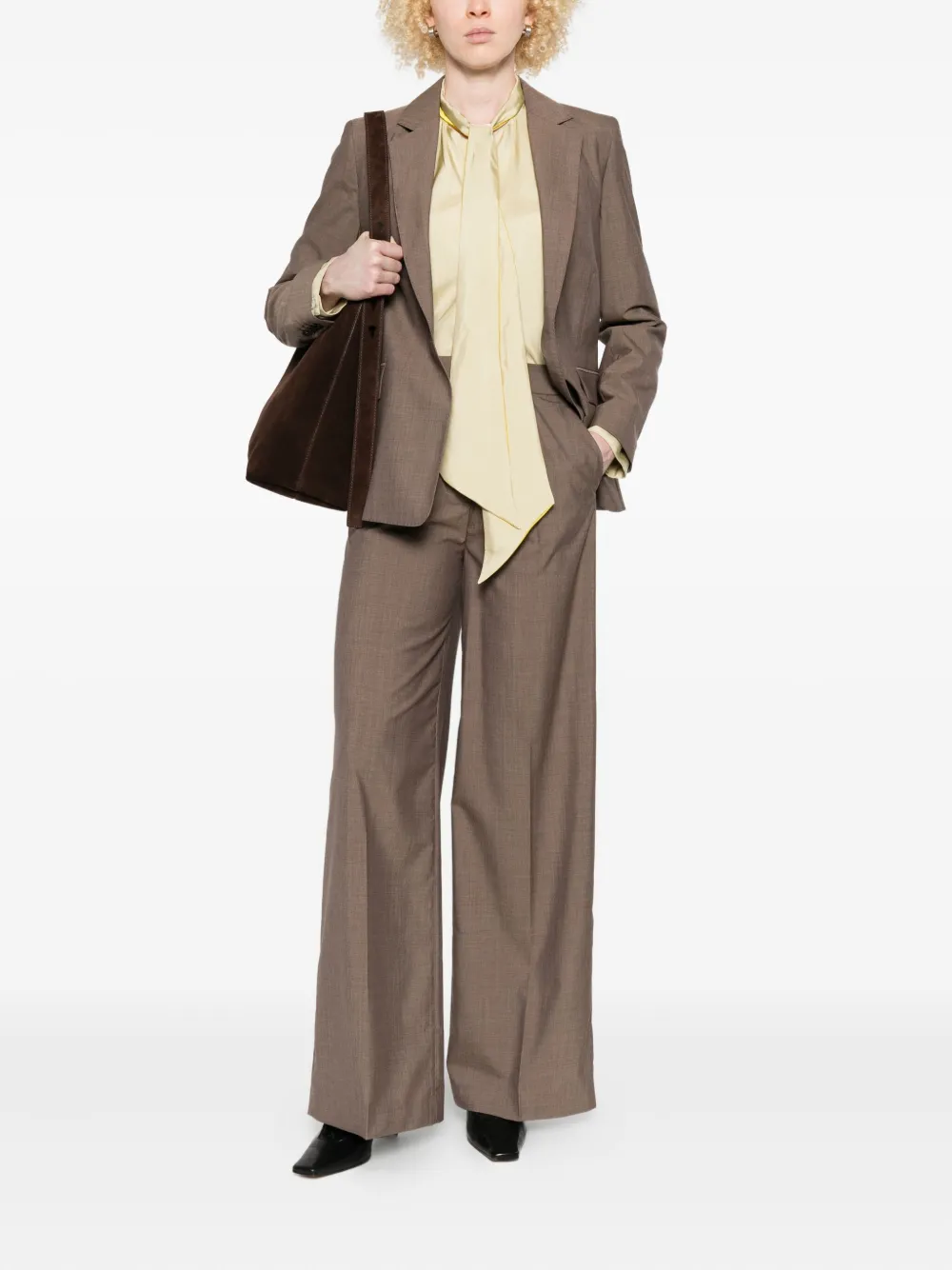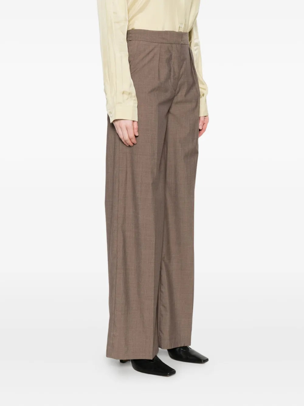 Коричневый застежка, скрытая спереди плиссированный перед прорезные карманы чистая шерсть