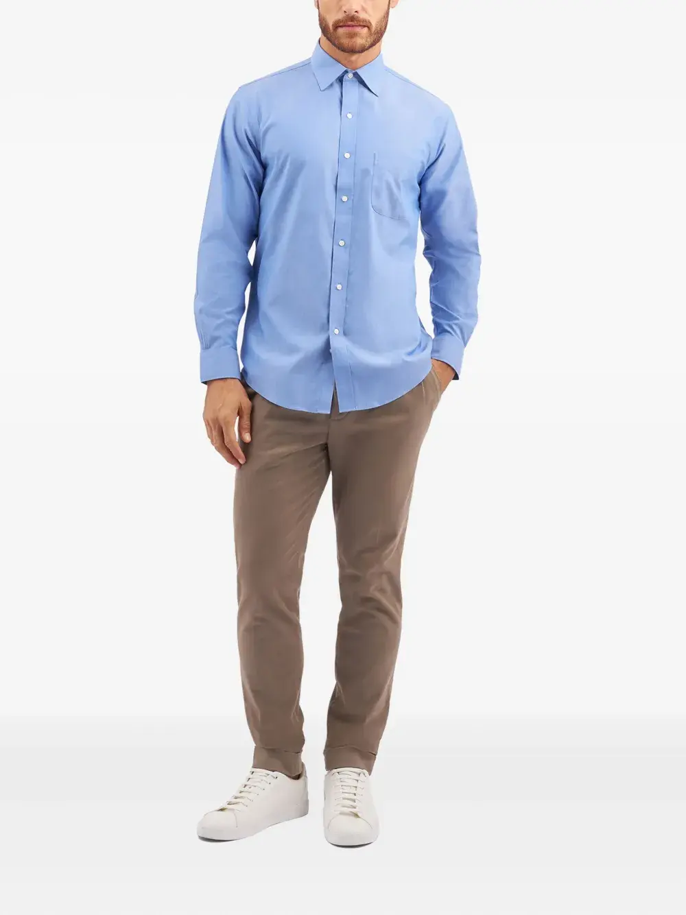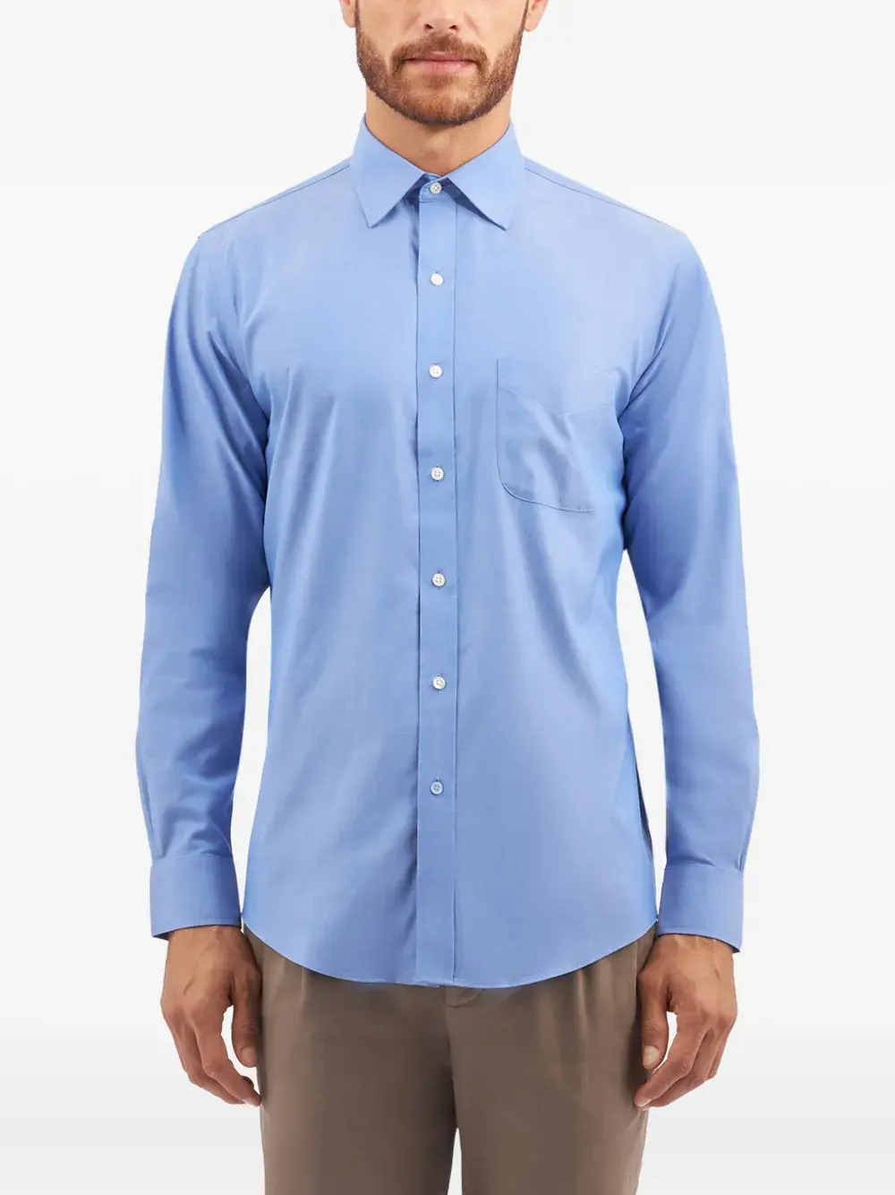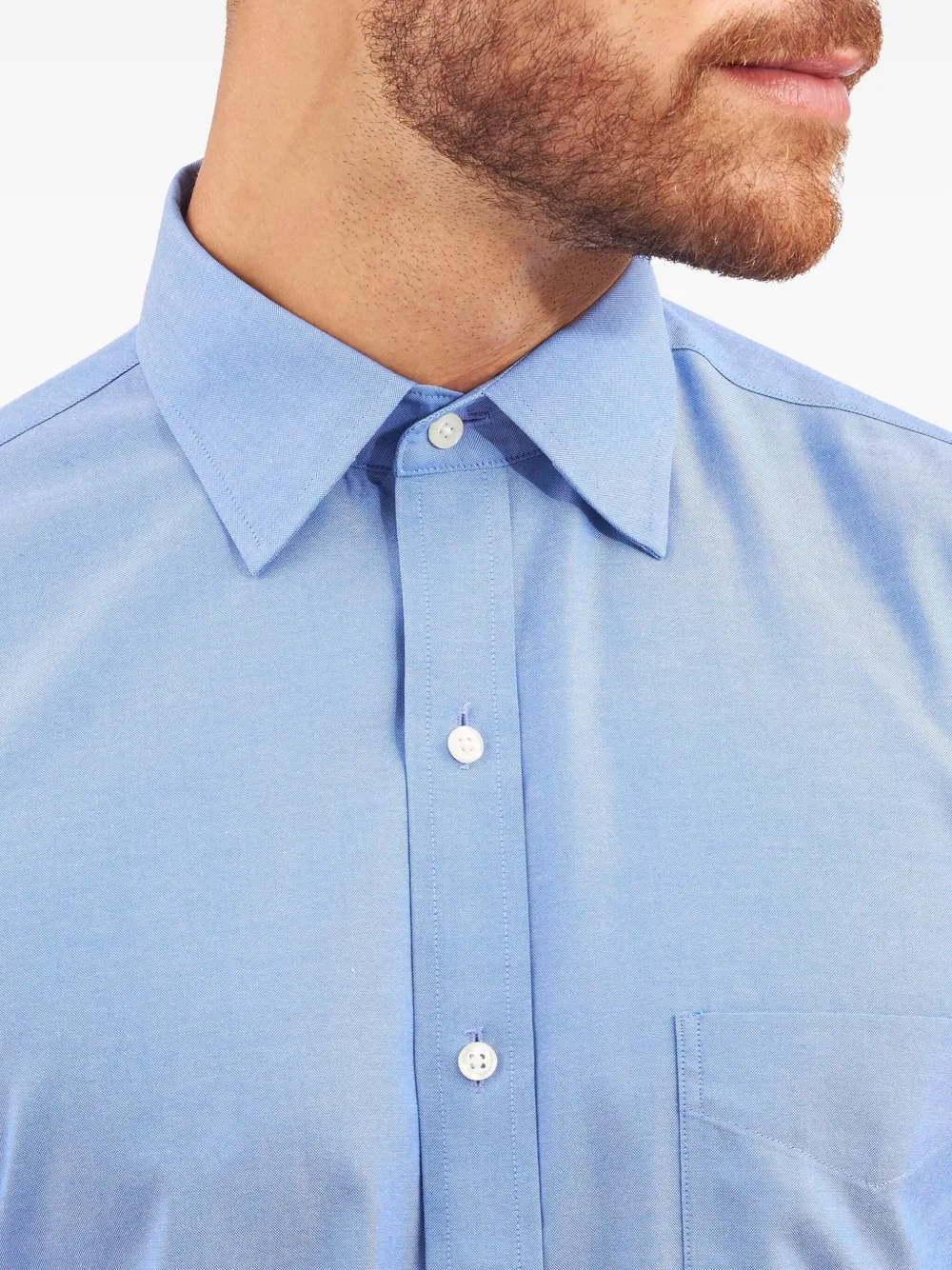 Синий воротник на пуговицах длинные рукава манжеты на пуговицах нагрудный карман