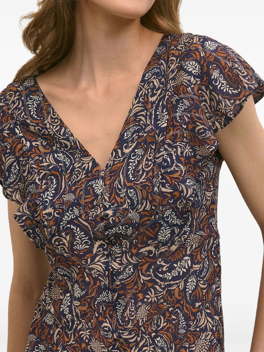 Миди-платье с принтом "пейсли" и V-образным вырезом Brooks Brothers, синий