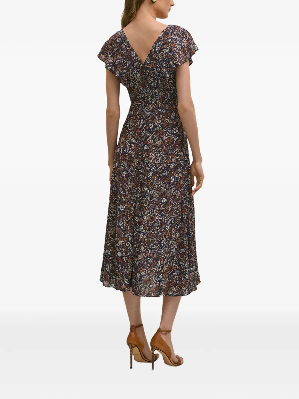 Многоцветный принт "пейсли" V-образный вырез короткие рукава длина миди