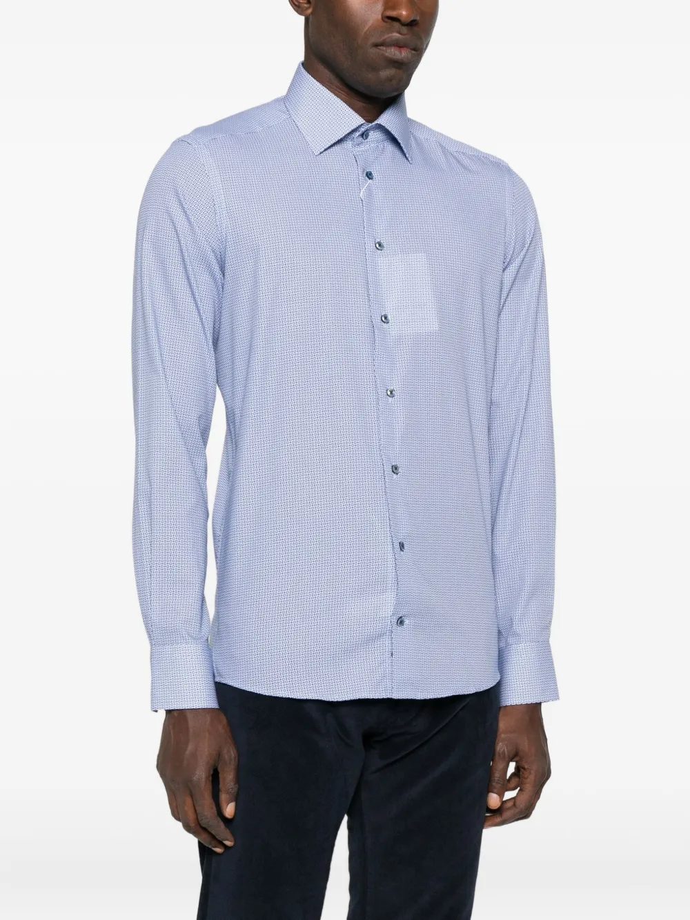 Светло-голубой геометрический принт длинные рукава застежка на пуговицы спереди закругленный подол классический воротник