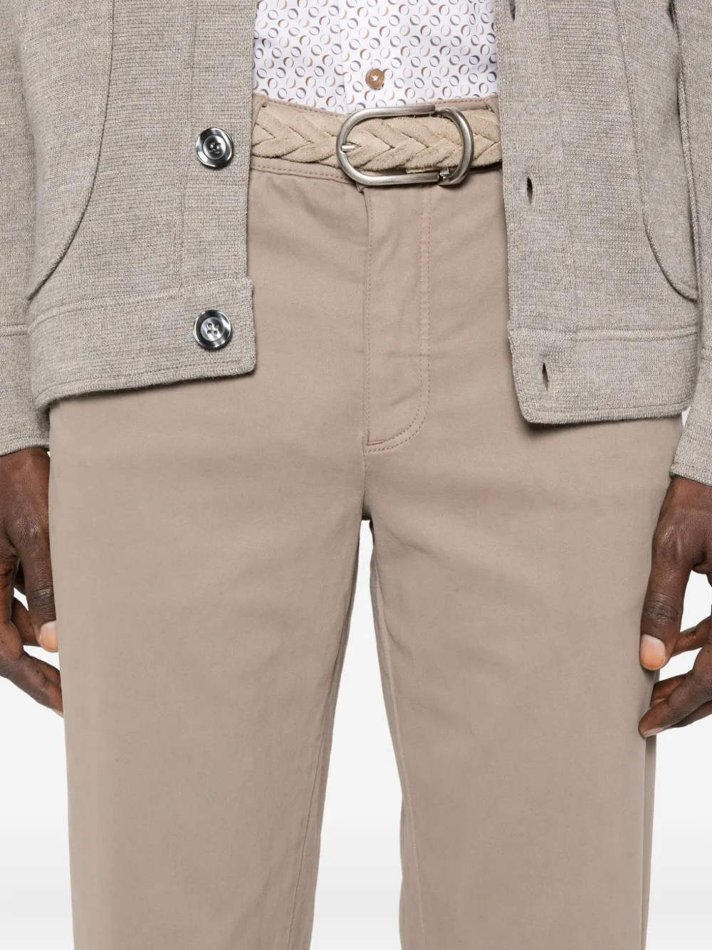Бежевый подвернутые края брюк боковые карманы застежка на пуговицу и молнию плоский перед прямые брючины