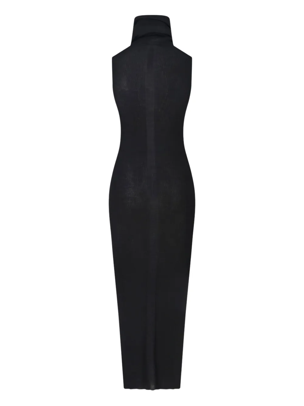Макси-платье с высоким воротником в рубчик Rick Owens, черный