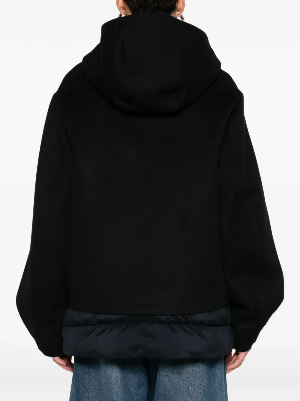 Черный наполненный пухом низ застежка-молния спереди капюшон на кулиске карманы с листочкой